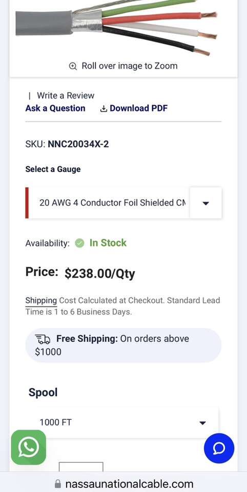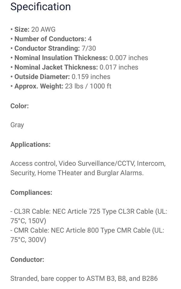 Description- 1000’ Spool of 20 AWG 4-conductor foil shielded FPLR/CL3R or (UL) CMP, fire alarm/security/communications cable. See photos for more product information and specifications.