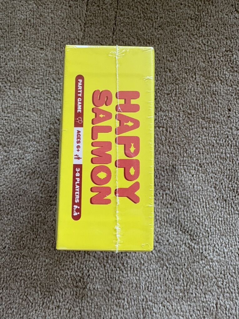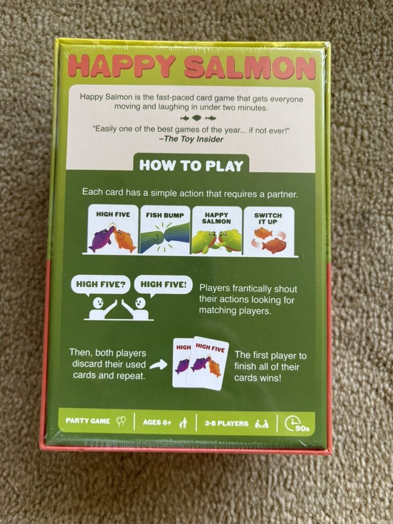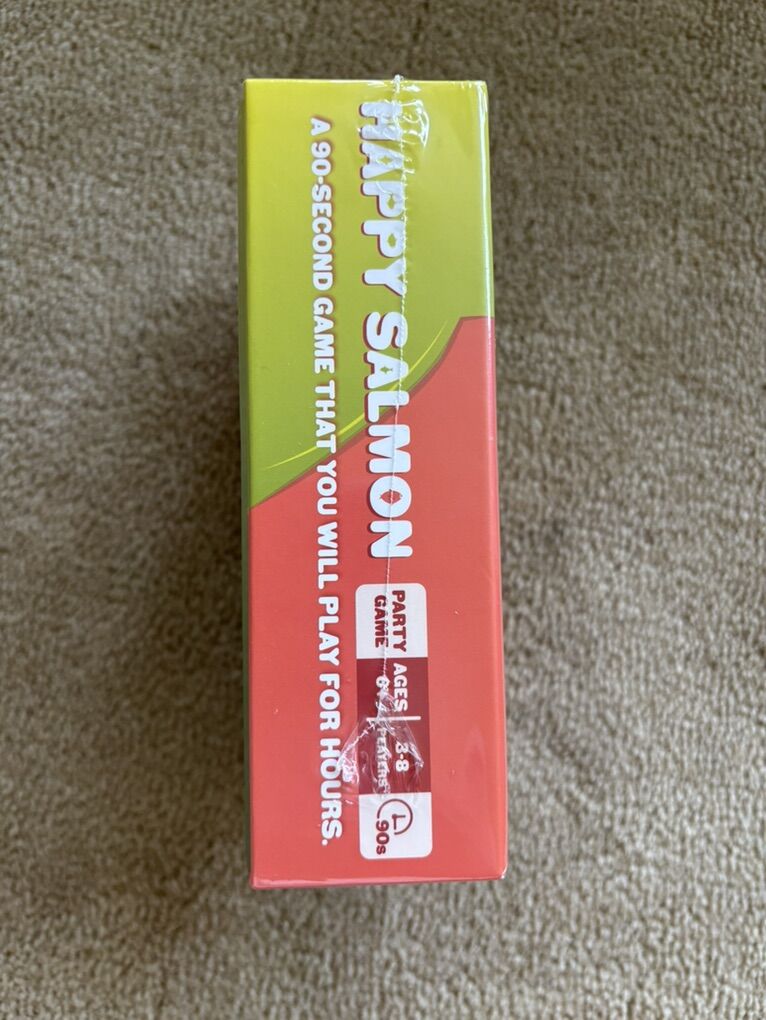 NEW (sealed in plastic) Happy Salmon: a 90-second party game that you will play for hours. Ages 6+, 3-8 players. A game by Exploding Kittens. A fast-paced, super fun card game. New, unopened condition. Text only. Cash or Venmo.