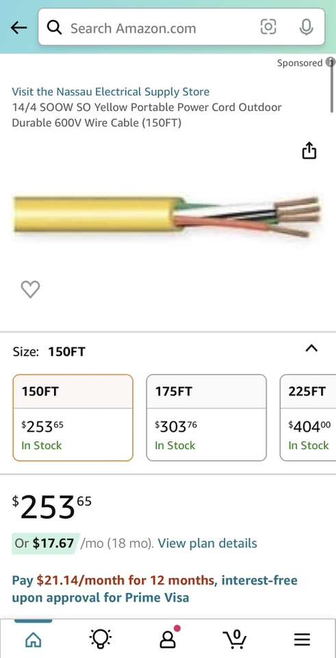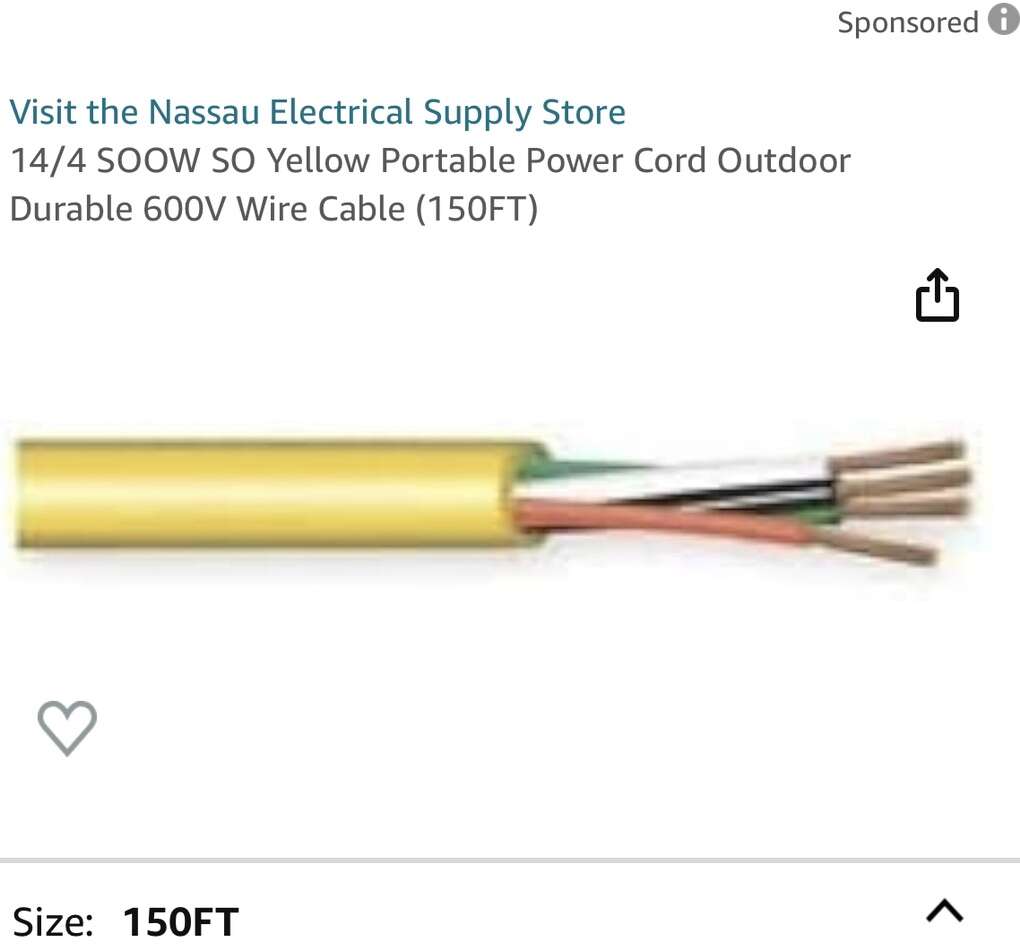 Description- 150’ Spool of 14/4 SOOW SO yellow, outdoor, portable power cord cable. See photos for more product information and specifications.