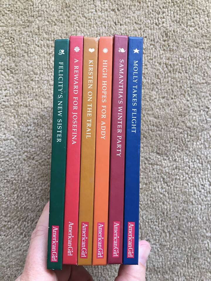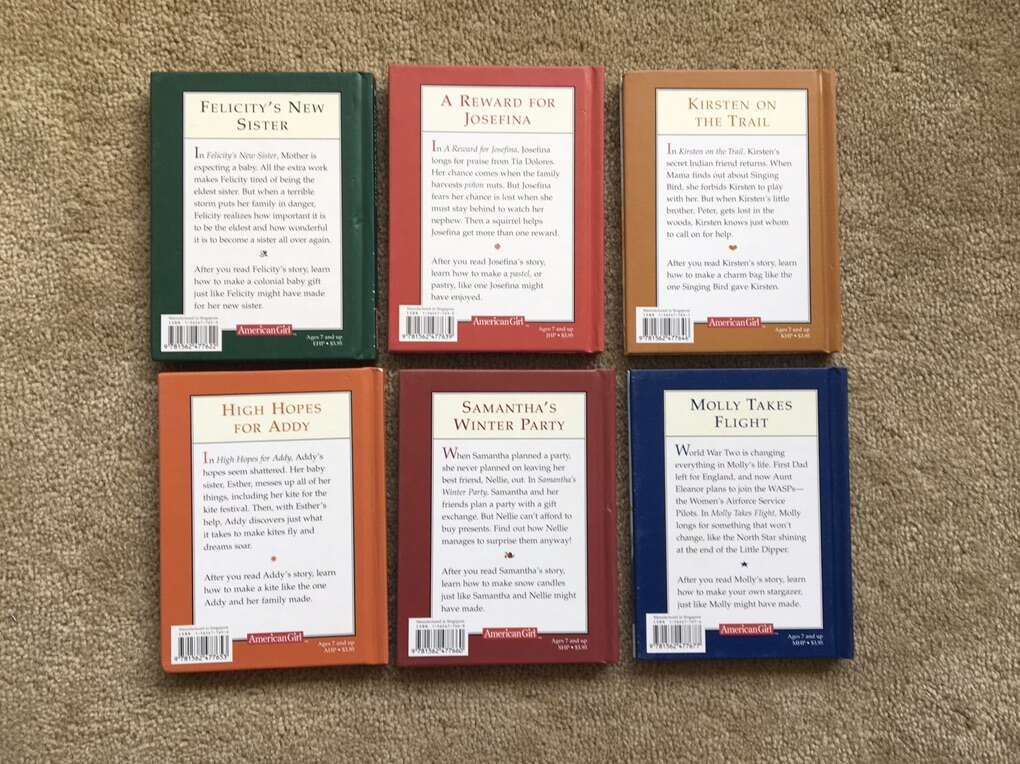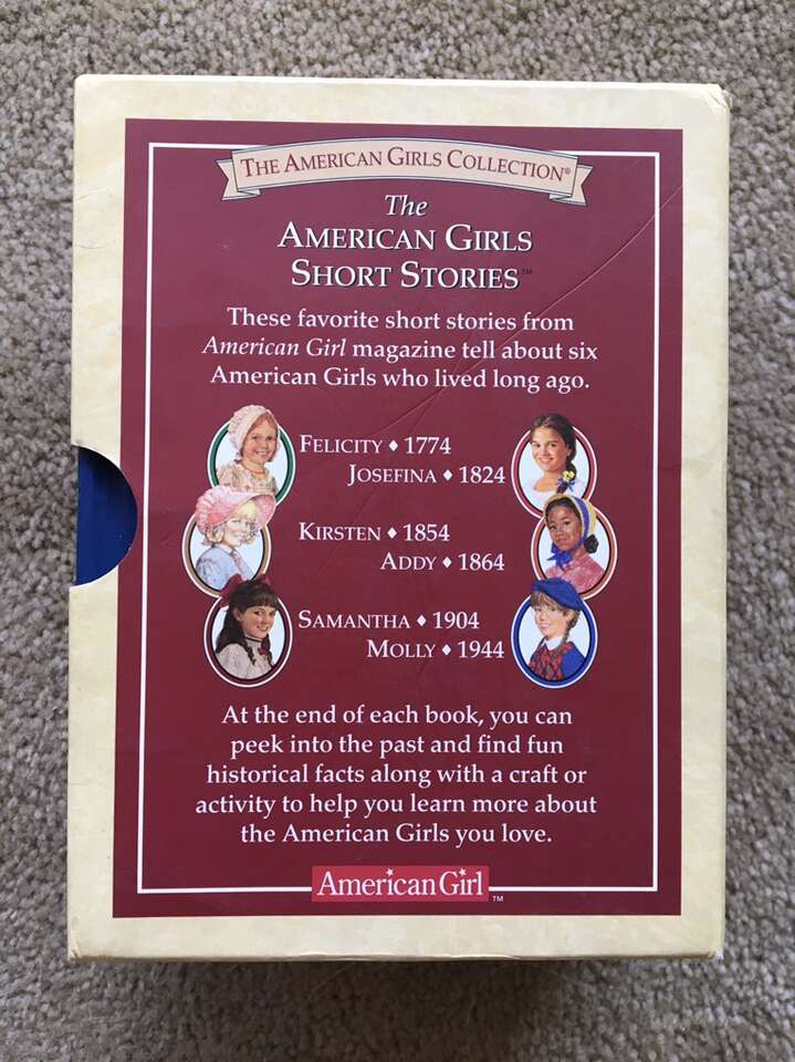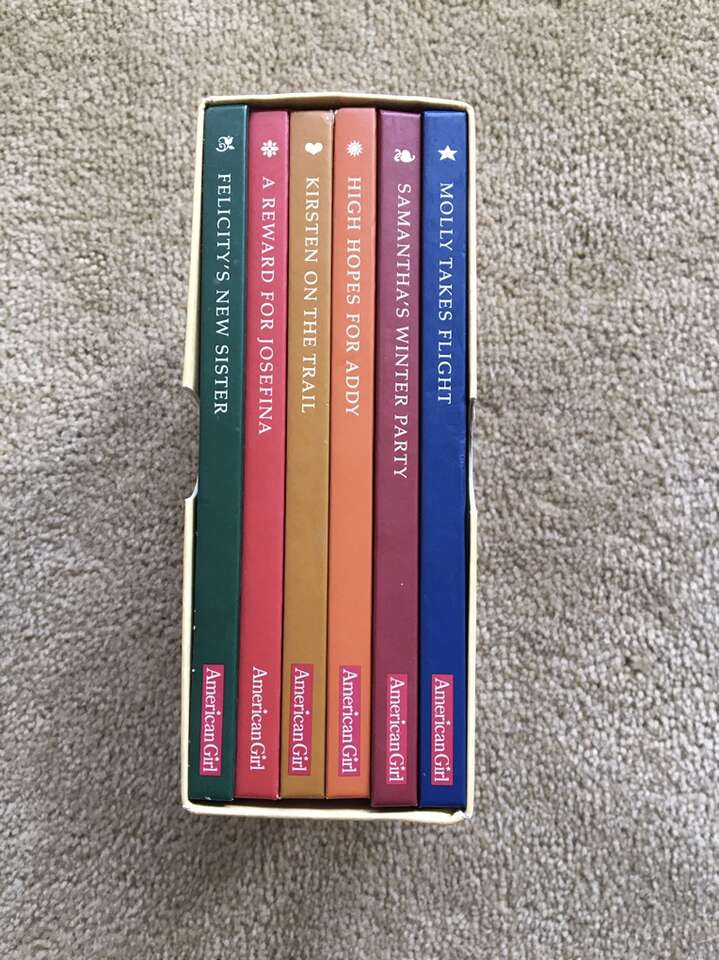 The American Girls Short Stories Collection, Set 1: Felicity’s New Sister, A Reward for Josephina, Kirsten on the Trail, High Hopes for Addy, Samantha’s Winter Party, and Molly Takes Flight. 6 small hardback books in excellent condition, in a slip case. Text only. Cash or Venmo.