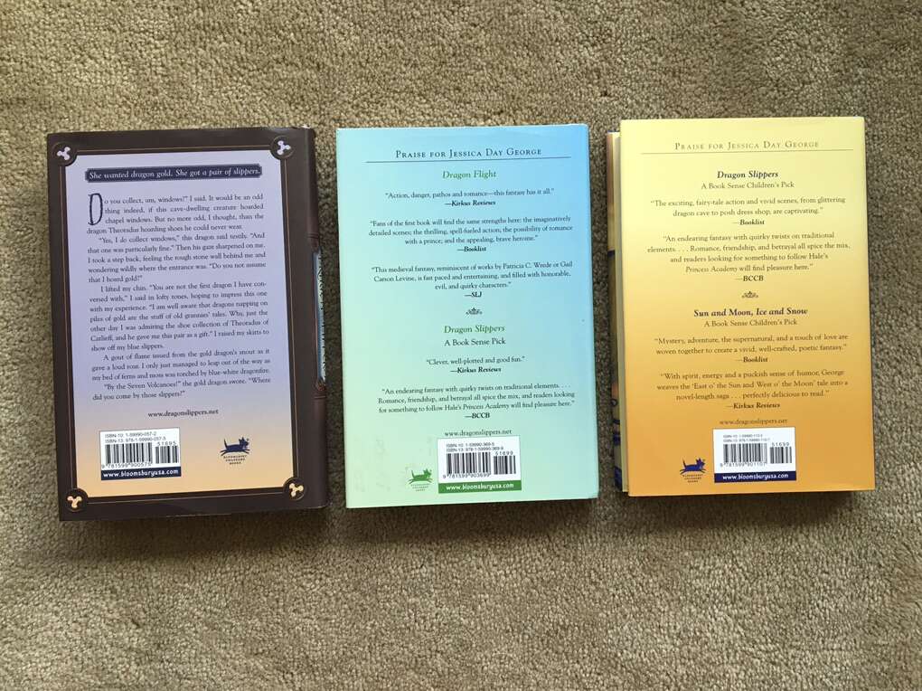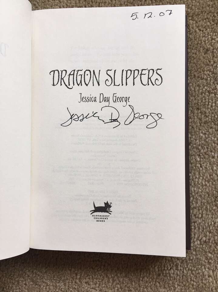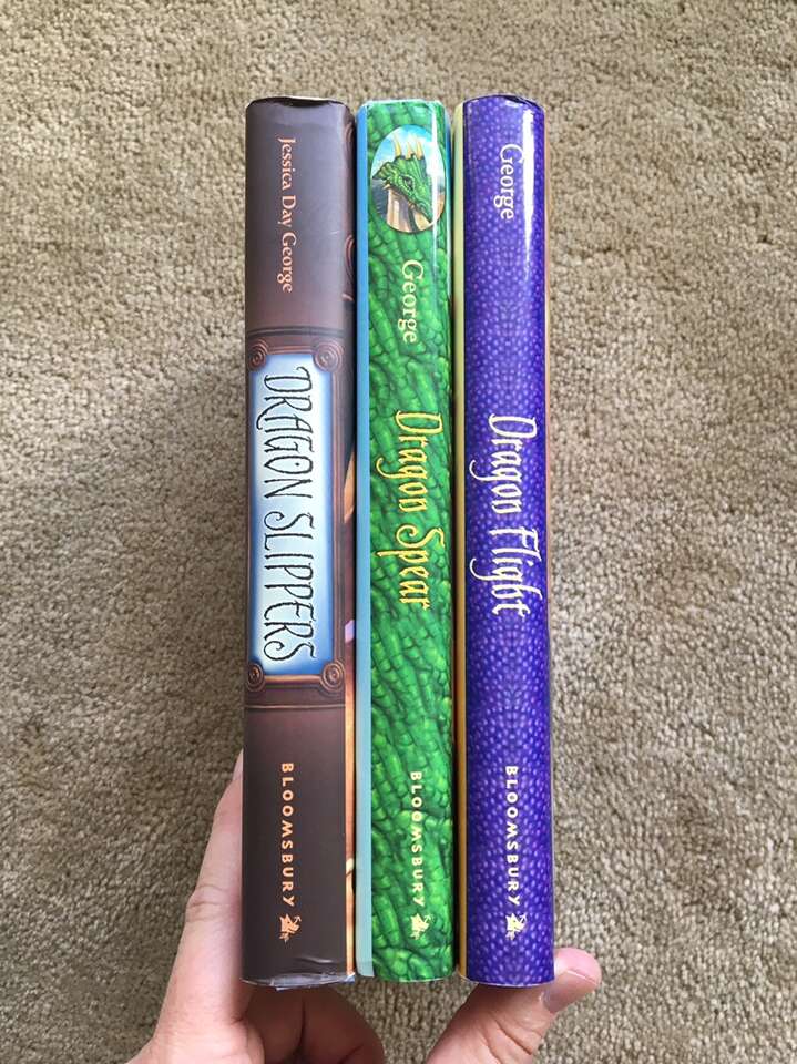 Dragon Slippers Trilogy, by Jessica Day George: Dragon Slippers—SIGNED (2007, 321 pages), Dragon Flight (2008, 262 pages), and Dragon Spear (2009, 246 pages). YA hardbacks in excellent condition, including dust jackets. Text only. Cash or Venmo.