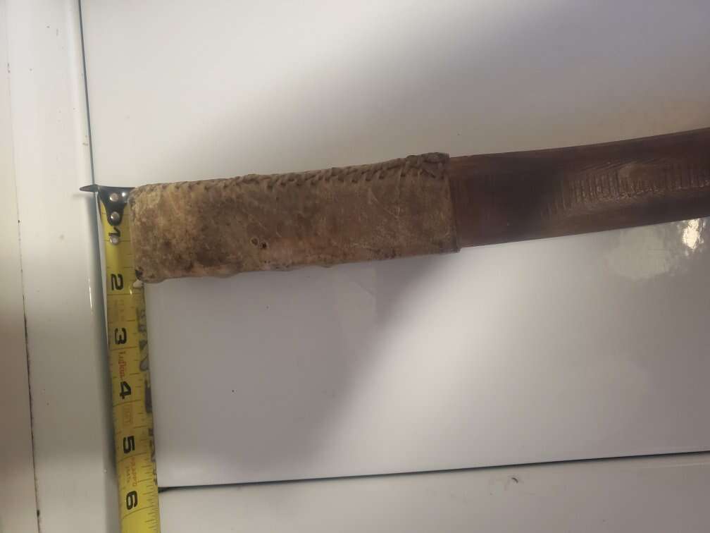 This looks like a vintage possibility home made leather working mallet. Let me know if you believe it to be something else please. 10.00 CASH ONLY