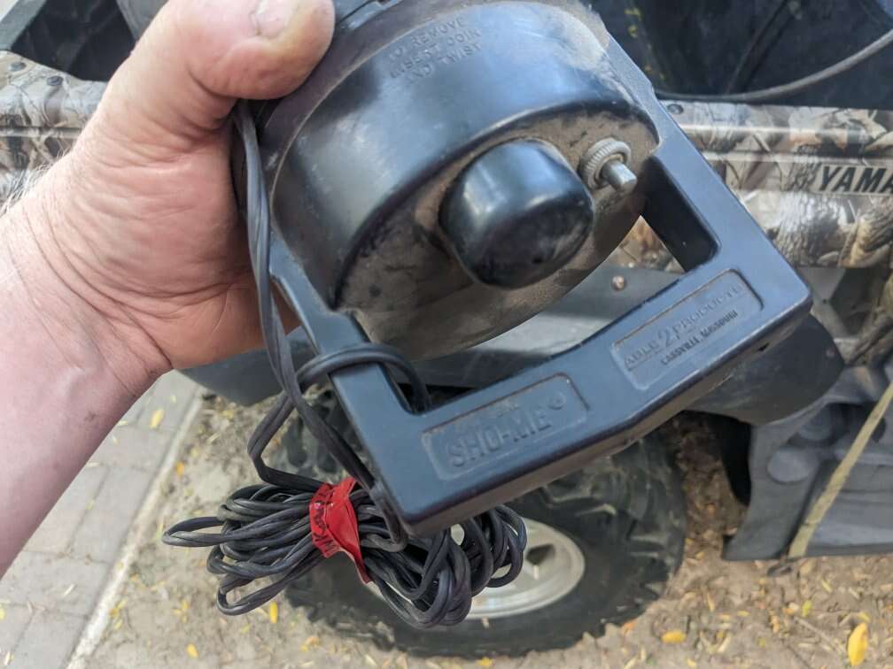 Cigarette plug spot light. Solid or flashing modes. Works great.