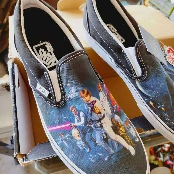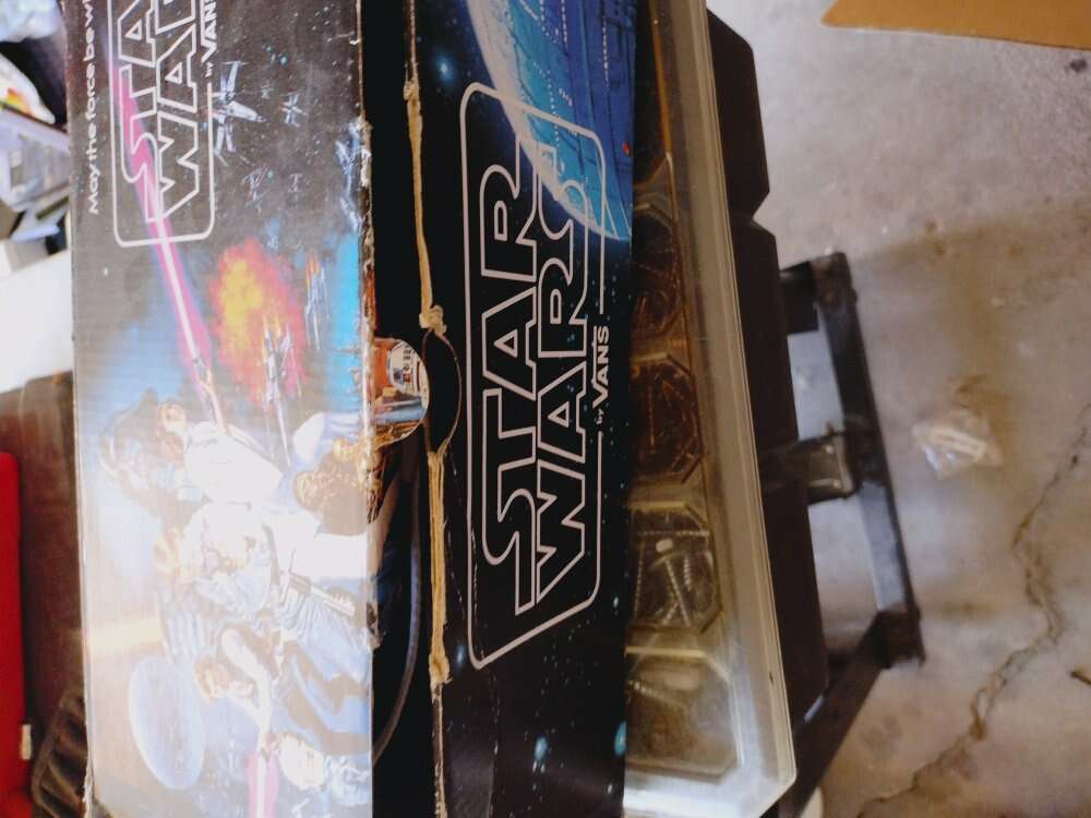 Vans sstar wars shoes with box, black carry case, star wars angry birds hat, Shoes are a size 10