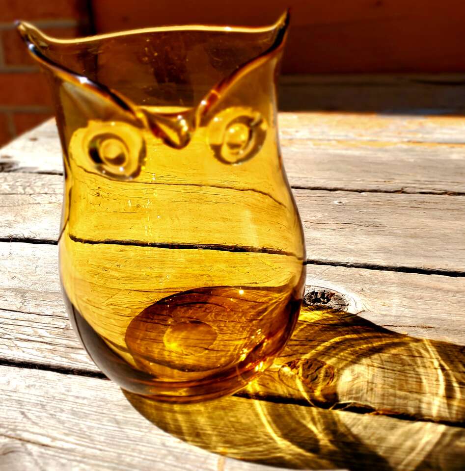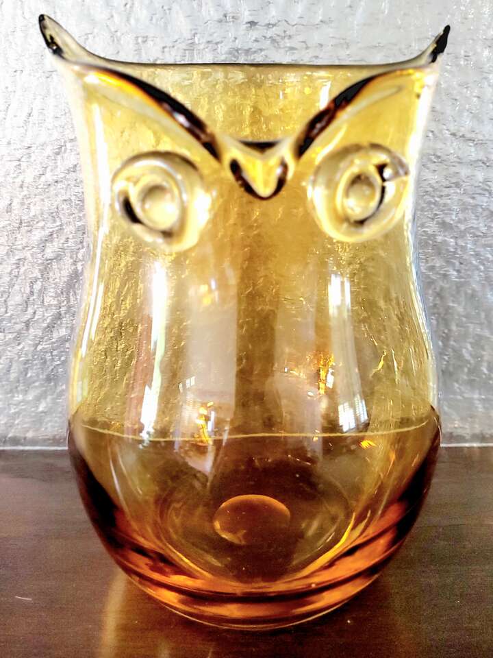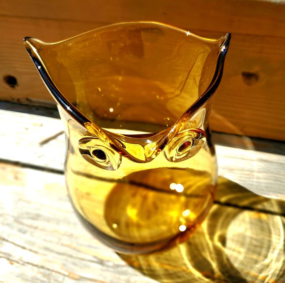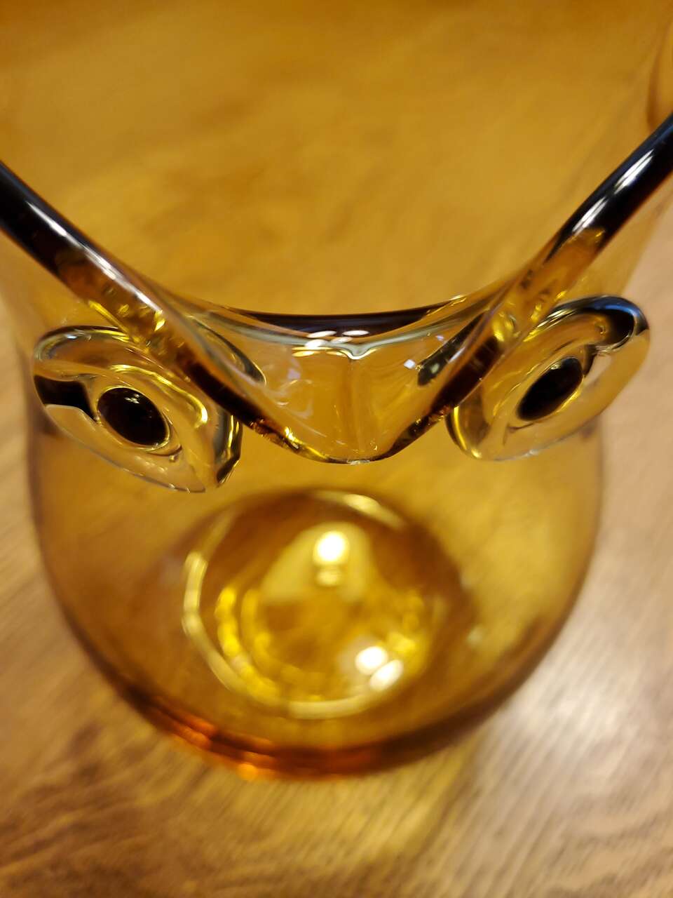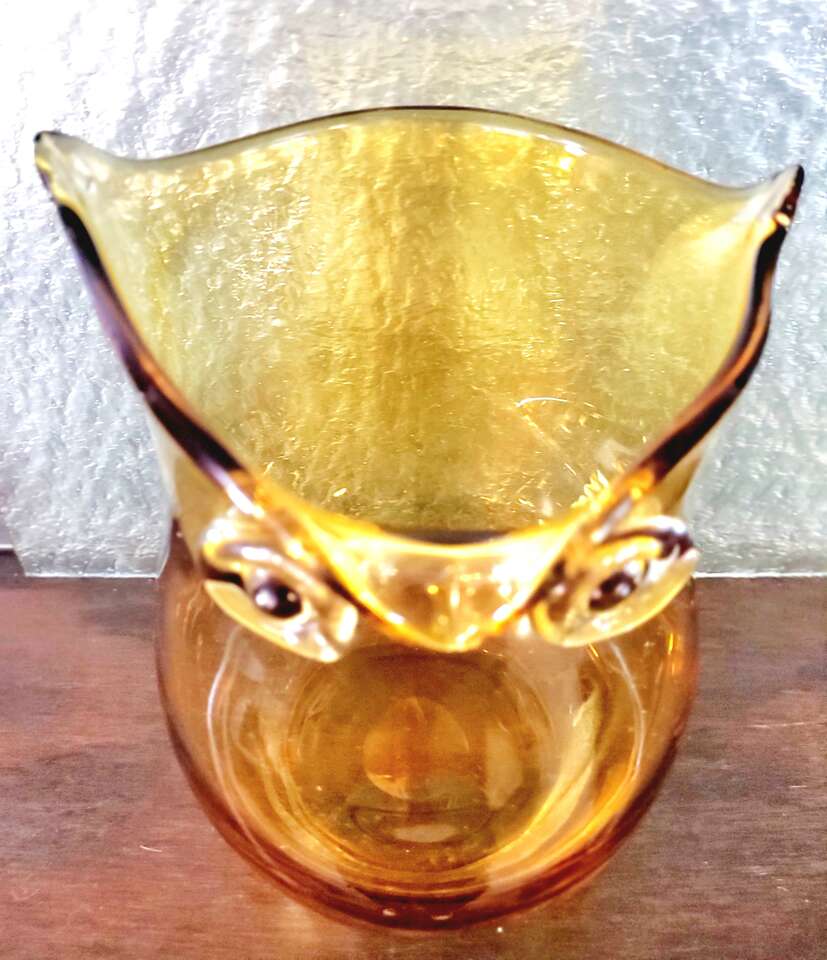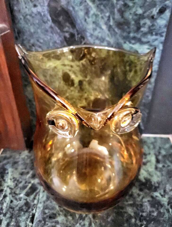 Large Amber Handblown Glass Owl Vase 7.5" Height. Cash Only, No Codes