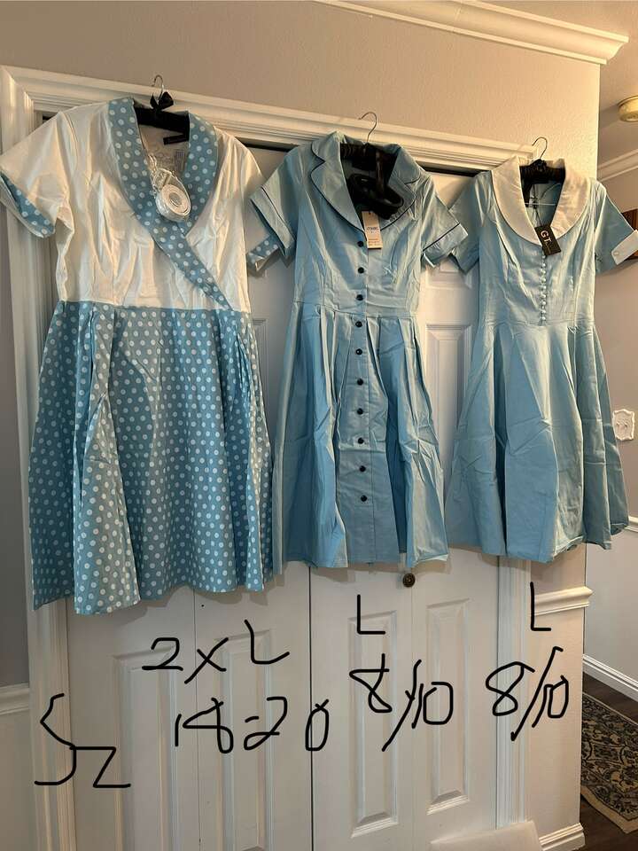 VenmoHey gals- I'm a pro singer in a vocal trio that has amassed a gazillion fun dresses in a variety of styles, colors, and sizes (4-20). Many not pictured. Most were worn only a couple of times, some are brand new with tags. I would love for someone else to put them to good use. Dresses: $25-$50ish. Shoes: $5-$10. Motivated seller! Prices negotiable! Thanks for looking! Have a loverly day!