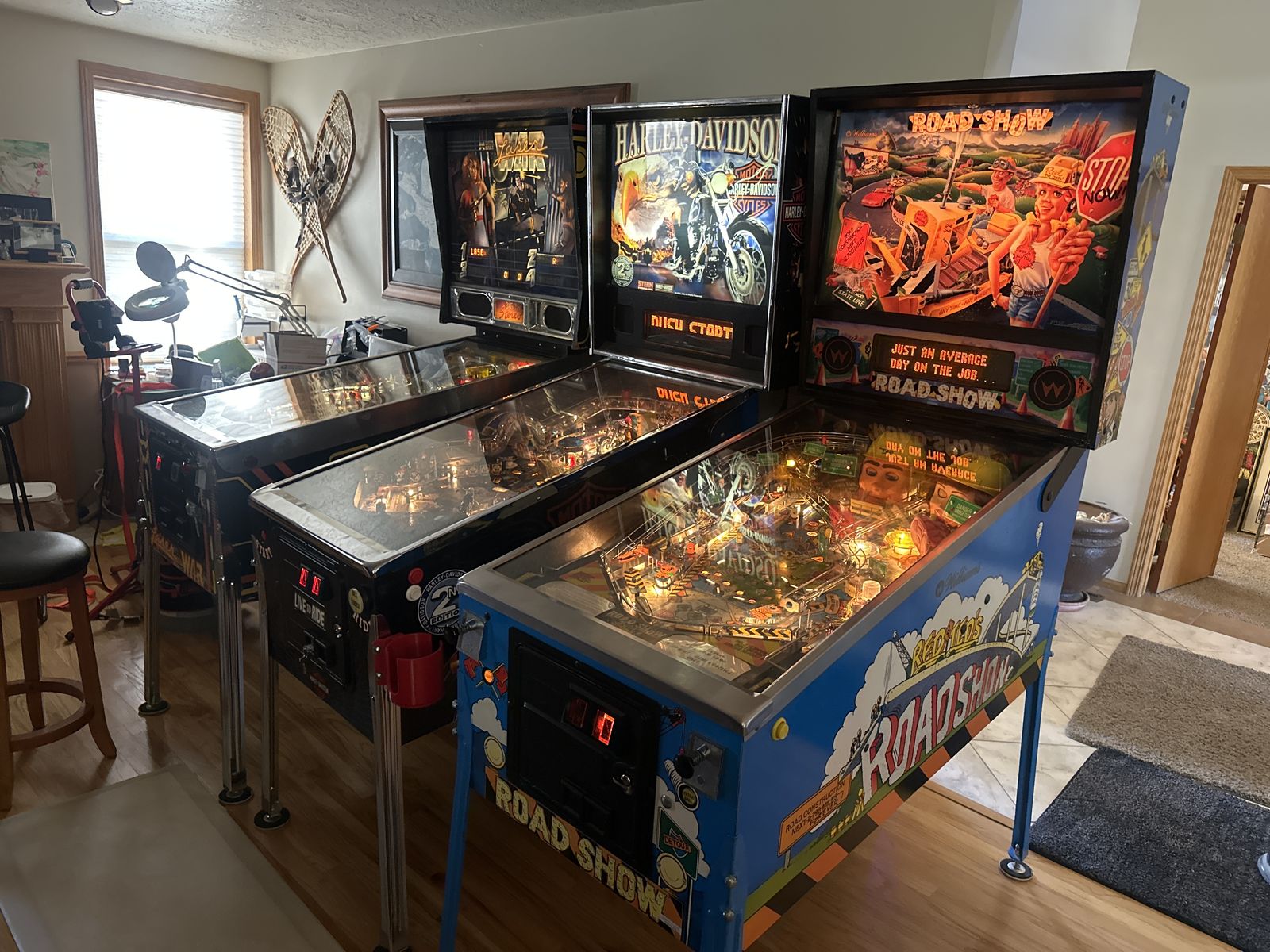 PayPalI have a problem. I just keep buying pinball machines. I seem to always have too many pinball machines and I need to sell some. I just listed several machines and I have others as you can see in these pics. I have all of these working great(except Gigi, The oldest EM I've ever owned, from 1963 & it works, but still needs adjustments to get everything perfect & my talent is in solid state, not EM). I really don't want to sell any of them, but if there's one you really want and you make me an offer I can't refuse, you can take it home. If you're seriously looking to buy a pin, come check out my collection. I like to buy them, get them working 100%, play them till I know they're totally solid (and set all the high scores), then move on. Unfortunately, they take a lot of space or I'd keep them all. I need to sell some to get space for more and I of course need money to buy more, so if you've got cash or machines to trade, come play and make me an offer or just come play and have fun . I always like to test them more! The Gigi EM is around $1000, the ones I want to sell are $3K-$7K, the top end machines(rare or limited edition collectibles) go from $7K to as high as $11-12k, I love my collection and love to preserve & share my love!