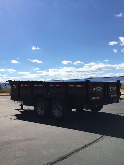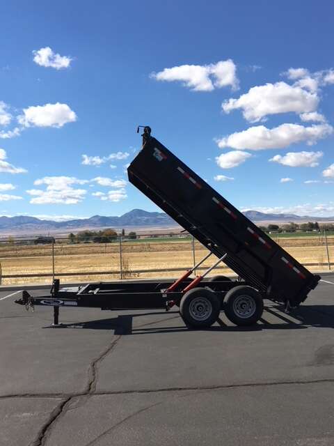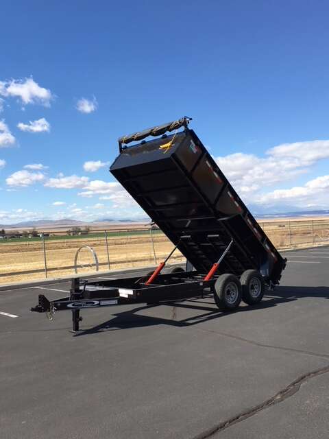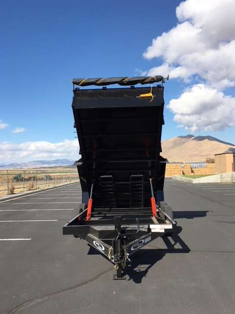 Brand New 2023 heavy duty Deluxe 15,000 lb GVWR 7x14 foot dump trailer. 26 inch walls with Double Heavey Duty hydraulic rams which help with dumping capacity and stability. This is one stout deluxe dump trailer with ramps in the back that slide nicely underneath. Also comes with the two combo door setup with Barn doors and spreader gates