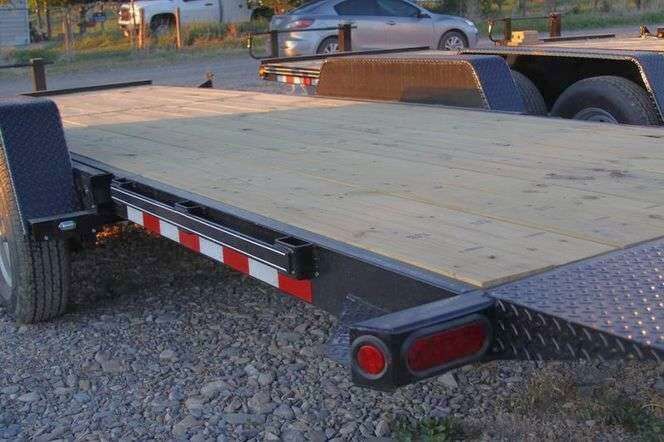 Deluxe 2023 Heavy duty tilt deck trailer. This trailer is rated for 15,000 lb rating, 22 foot trailer with a fixed 8 foot deck in the front. Cross members are 16 inch on center. Stake pockets for tying down. 12,000 pound drop foot spring loaded jack. LED lights, Sealed wire harness, Box for straps on the tongue, Rub rail all around the trailer. This is one stout trailer, great for hauling skid steers, minis, smaller tractors, along with attachments. 1 year warranty Also comes in a 17000 lb rating for only $10,500. We have a wide selection of tilt decks, dumps, goosenecks and more! 350 N 800 E Genola Call or text K2 Trailers anytime. Brian 801-472-1613 See other trailers on ourwebsite: www.k2trailers.com Visit us on Facebook https://www.facebook.com/k2trailers/ Teton snake river diamond c big tex walton mini excavator skid steer pj trailers