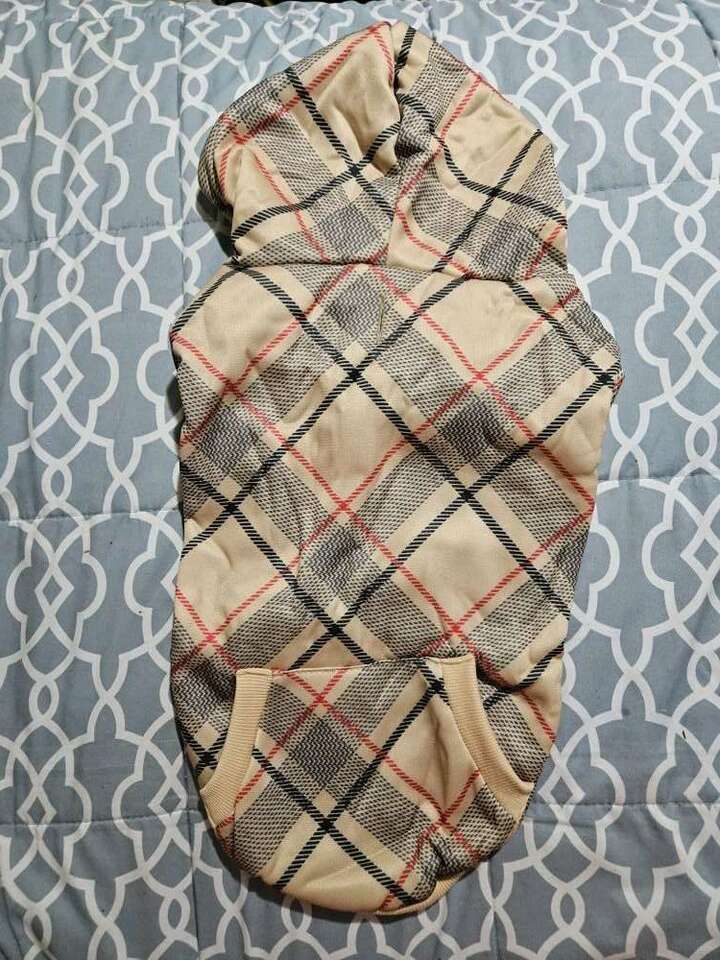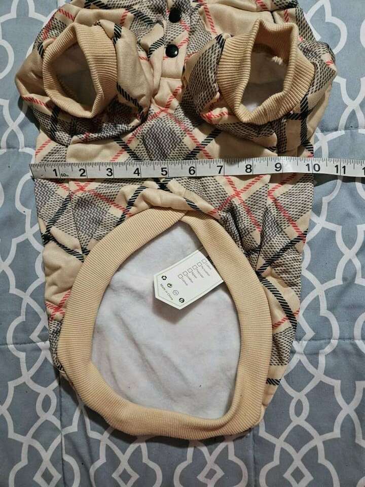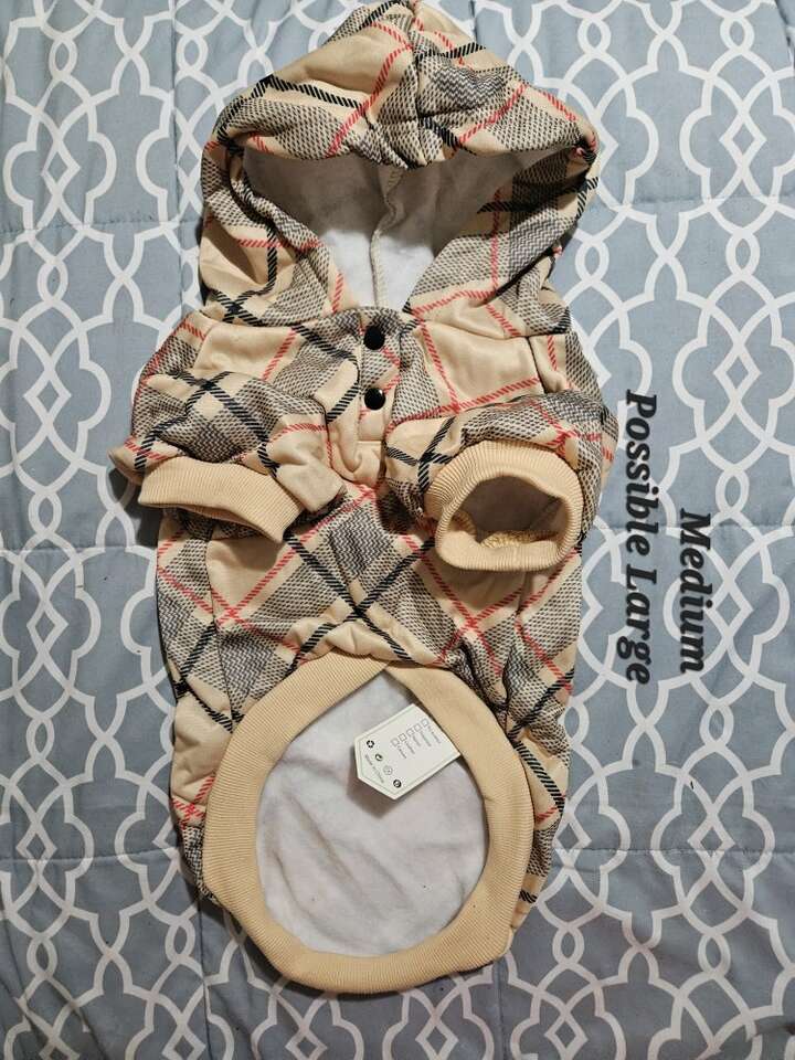 This sweater is labled a medium, but it much run large. I'd personally think it's a size large. Please check the measurements in the pictures to make sure it will fit you little one. The two snaps are real and this is 100% Polyester. All my items come from a smoke free home.