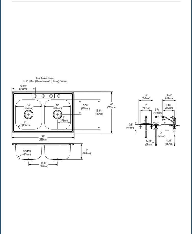 Elkay Stainless Steel 33 x 22 x 8-1/16 4-Hole Double Bowl Drop-in Sink with Quick-clip + Faucet Kit