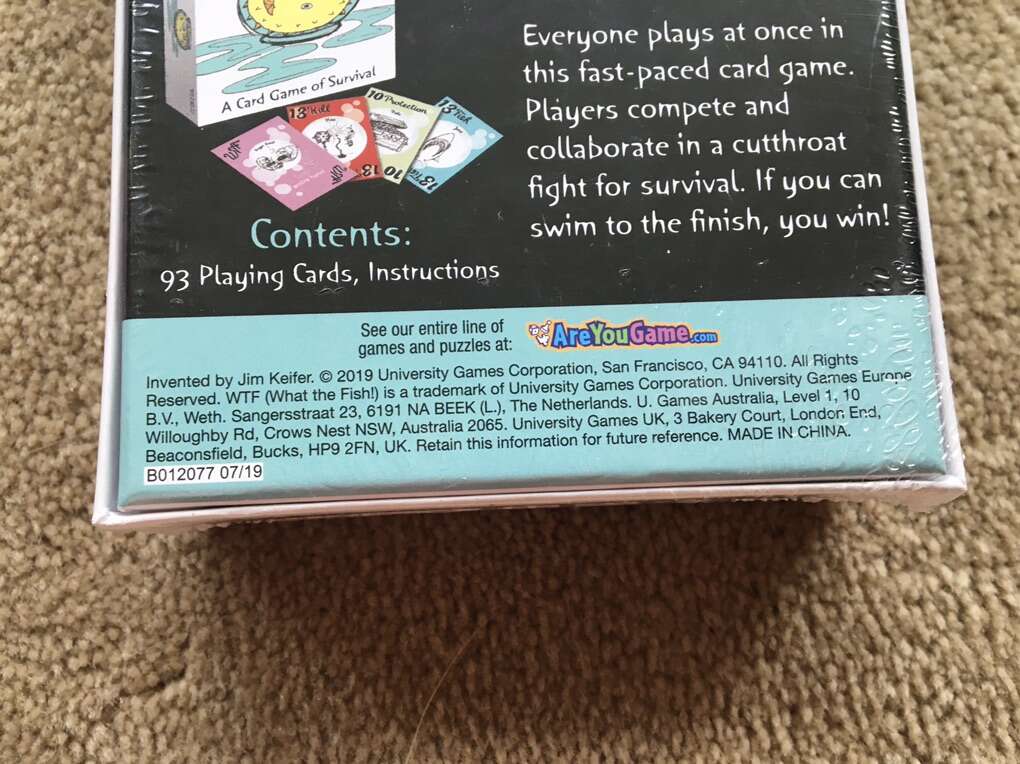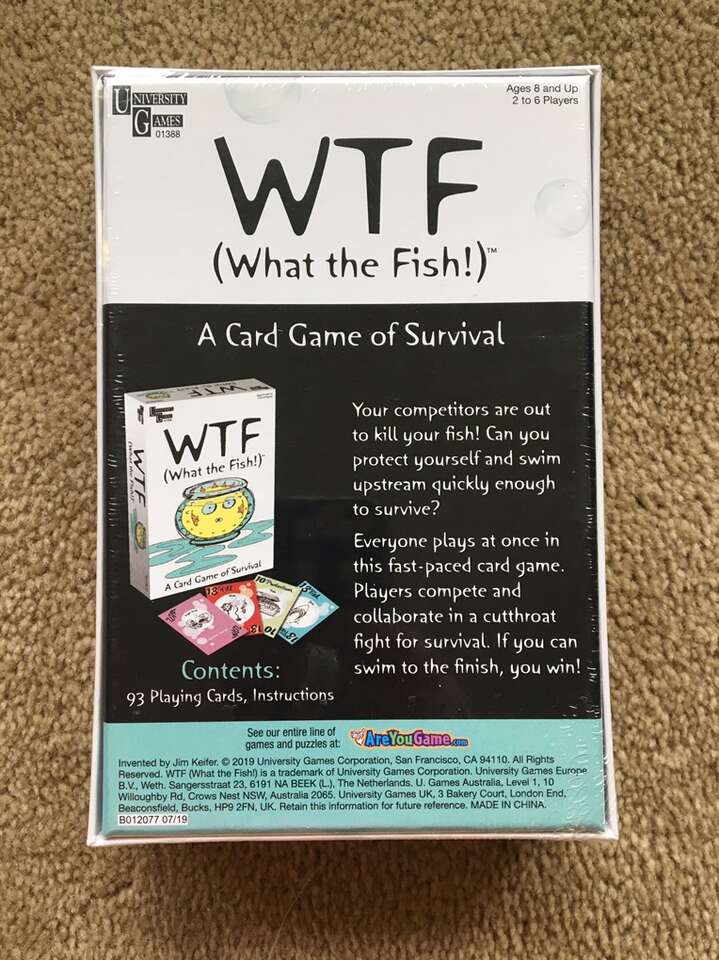 NEW (sealed in plastic) WTF (What the Fish!): A Card Game of Survival. Ages 8+, 2-6 players. By University Games, 2019. New, unplayed condition. Text only. Cash or Venmo. Discount on multiple items.
