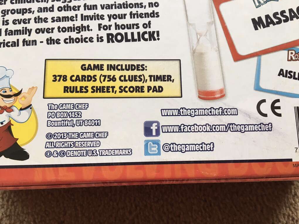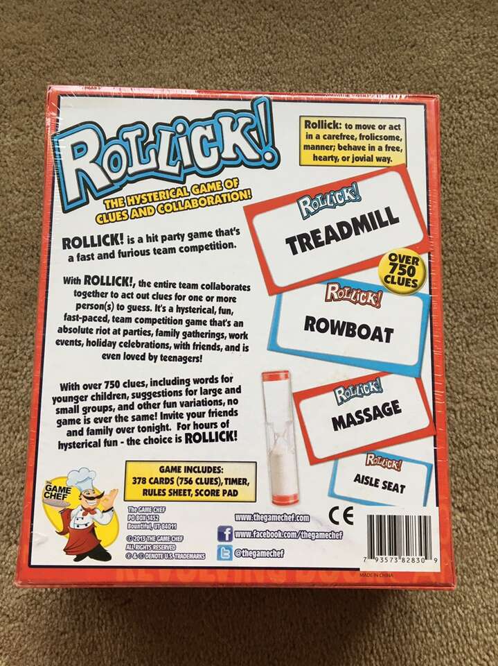 NEW (sealed in plastic) Rollick!: The hysterical game of clues and collaboration! Reverse charades party game. Ages 10+, 6+ players. By Game Chef, 2013. New, unplayed condition. Text only. Cash or Venmo. Discount on multiple items.