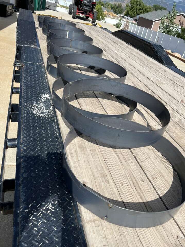 Landscape edging available in 20’ sections. (Usualy stocked with a few hundred feet for last minute orders). Thousands of feet available. Awesome look. Tree rings are also available form 12”-6’ round. Edging comes in 20’ sections with stake pockets every 24” Very easy installation. Price starts at 25$ per tree ring Price starts at 3.99 per foot for 4” landscaping edging. 801 703 4775 BY FAR THE STRONGEST STEEL EDGING AVILIBLE, NOT CHEAP THIN 14 GAUGE LIKE THE BIG BOX STORE, OUR IS TWICE THE THICKNESS AND DOUBLE THE LENGTHS. DELIVERY AVAILABLE. https://steelhardscapes.com/