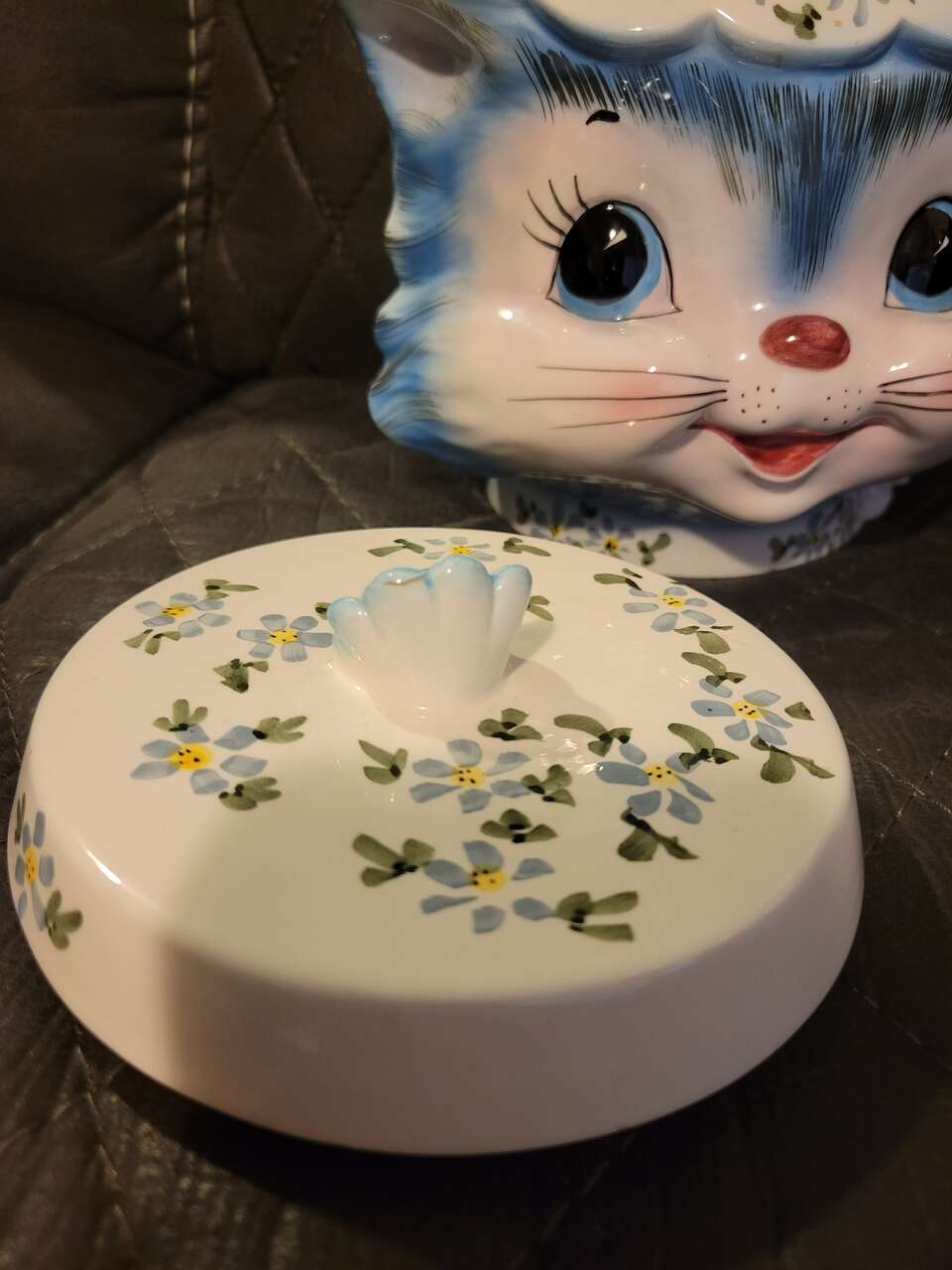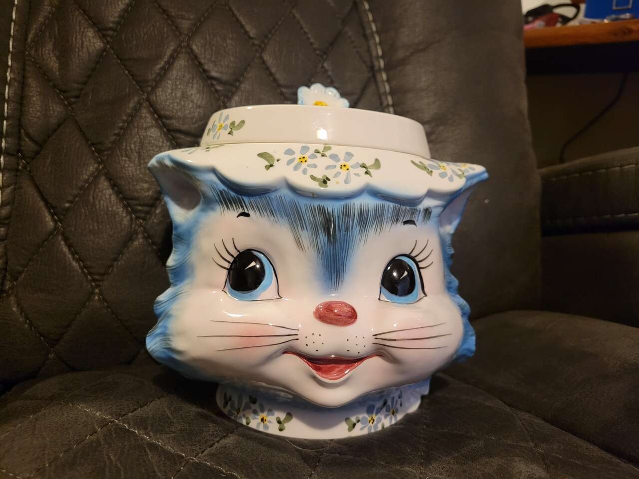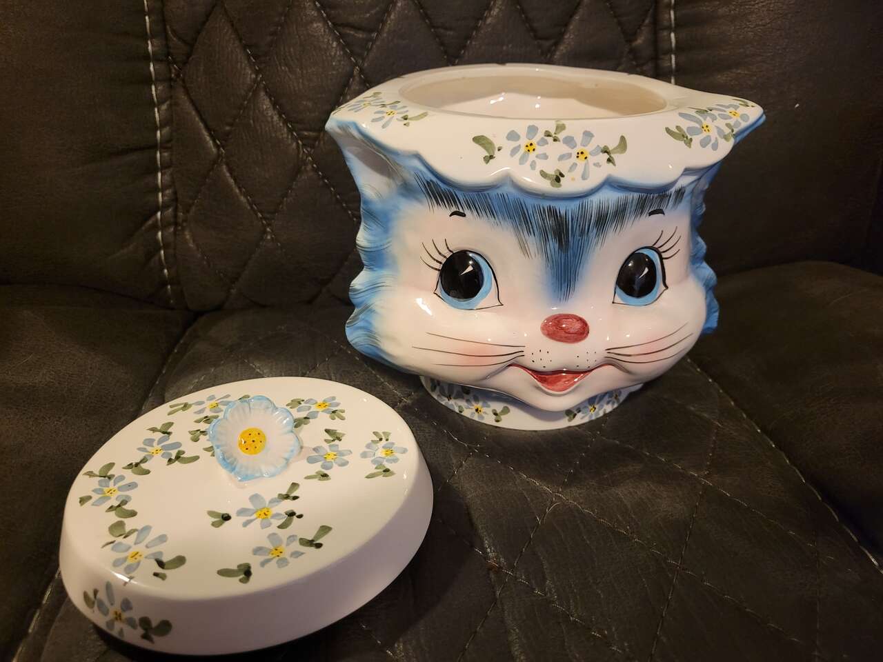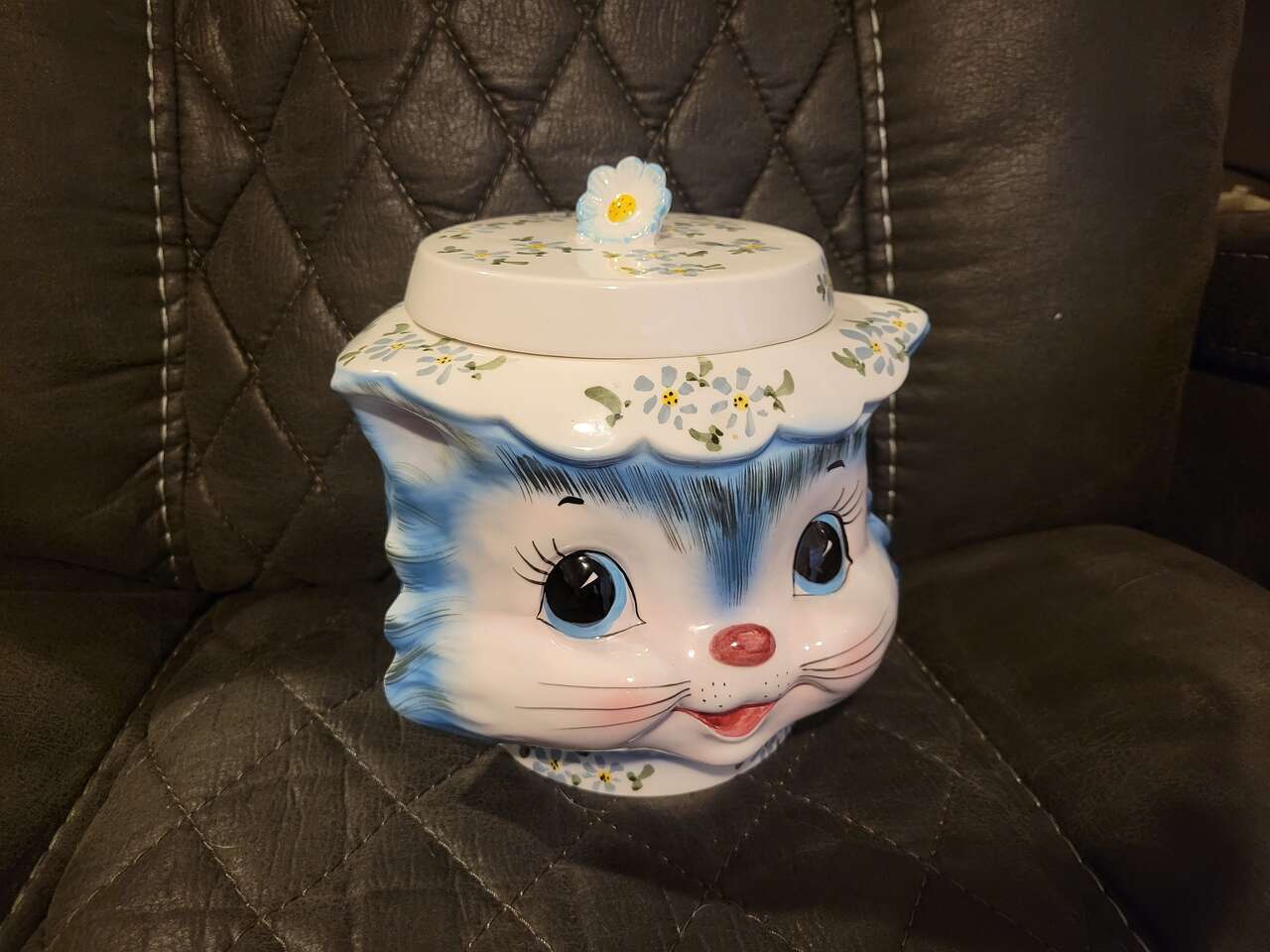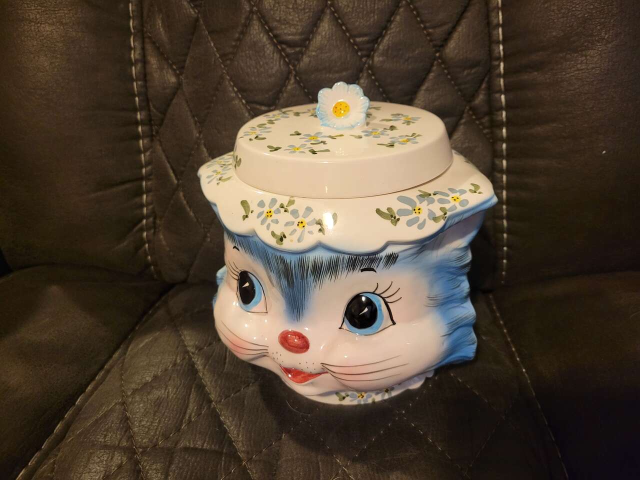 VINTAGE MISS PRISS LEFTON CAT COOKIE JAR with lid