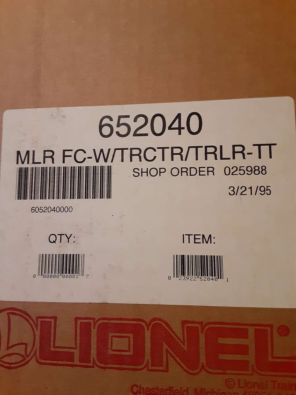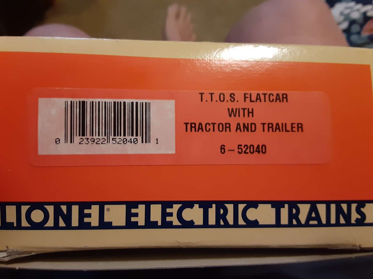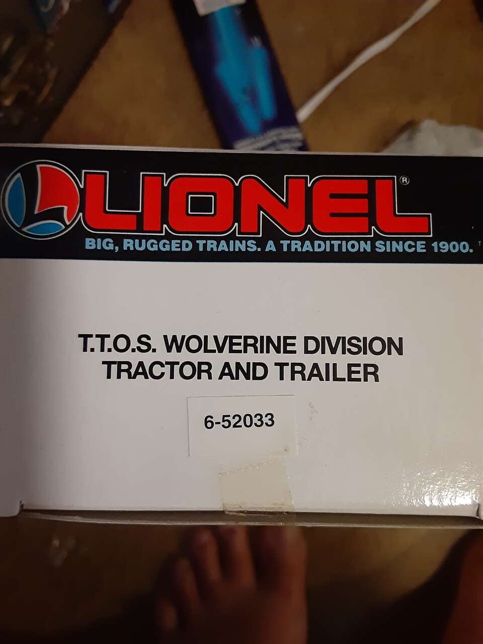 Lionel 6-52040 TTOS Wolverine Division trailer on a flat car.