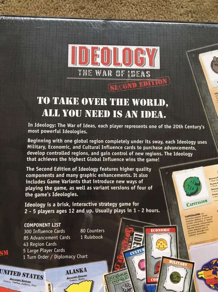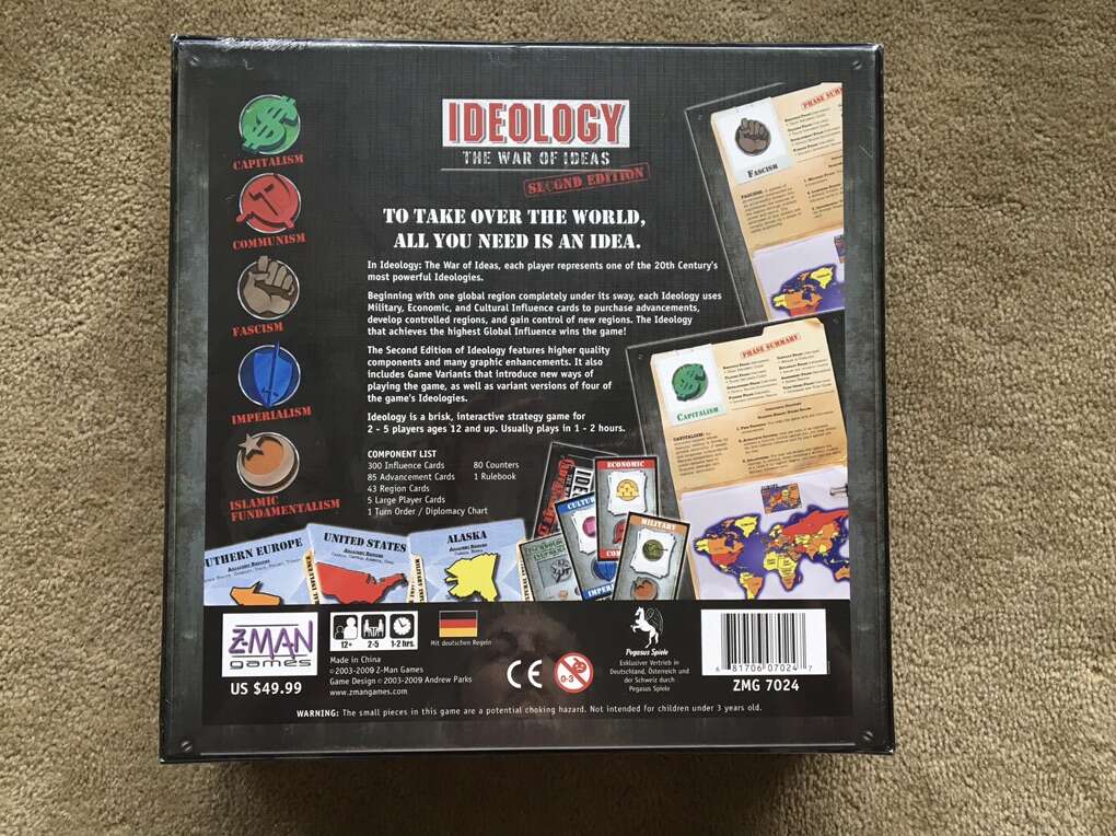NEW (sealed in plastic) Ideology: The War of Ideas (2nd edition). To take over the world, all you need is an idea. By Z-man Games, Andrew Parks, 2009. Ages 12+, 2-5 players. Originally in German. High-quality game. New, unopened condition. Text only. Cash or Venmo.