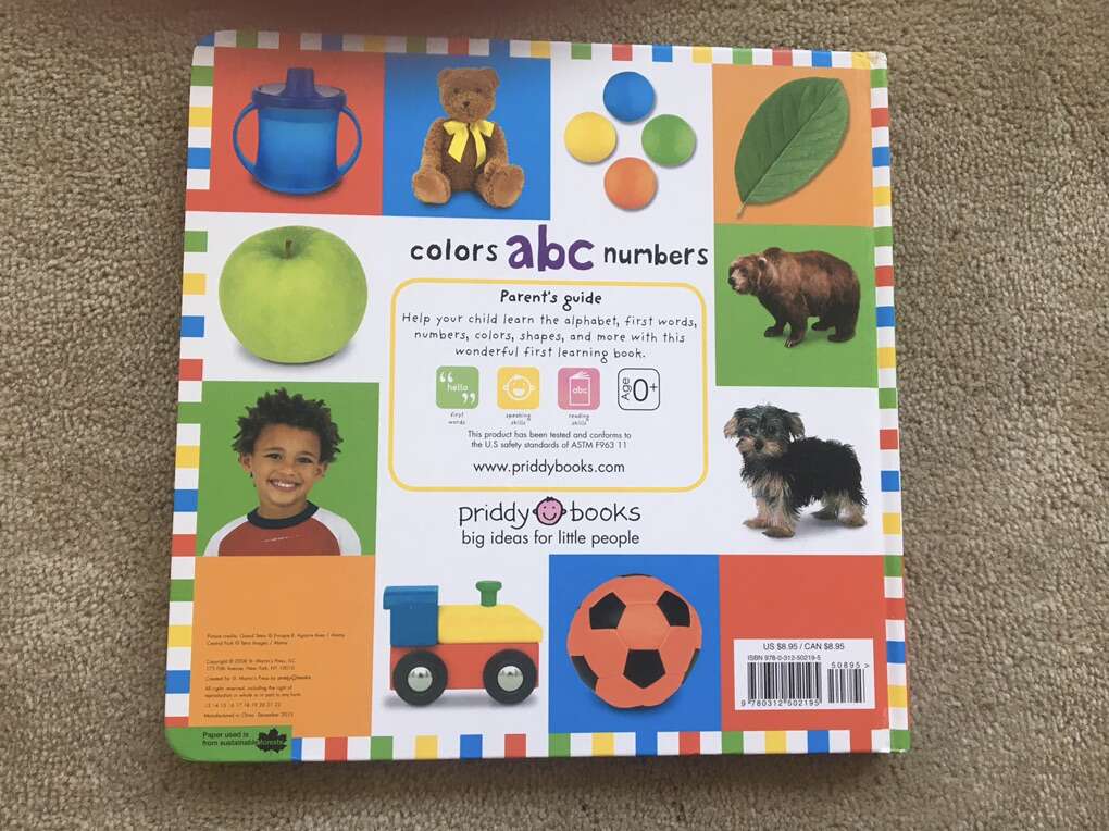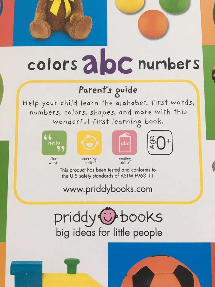 Bright Baby Colors, ABC, Numbers Board Book, by Priddy Books 2008. Oversized 11” x 11” sturdy board book full of colorful, educational pictures. Excellent condition. Text only. Cash or Venmo.