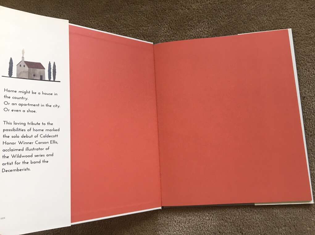 Home, by Carson Ellis. Beautiful picture book with charming illustrations about what home is. Published by Candlewick Press, 2015. Excellent condition, including dust jacket. Text only. Cash or Venmo.