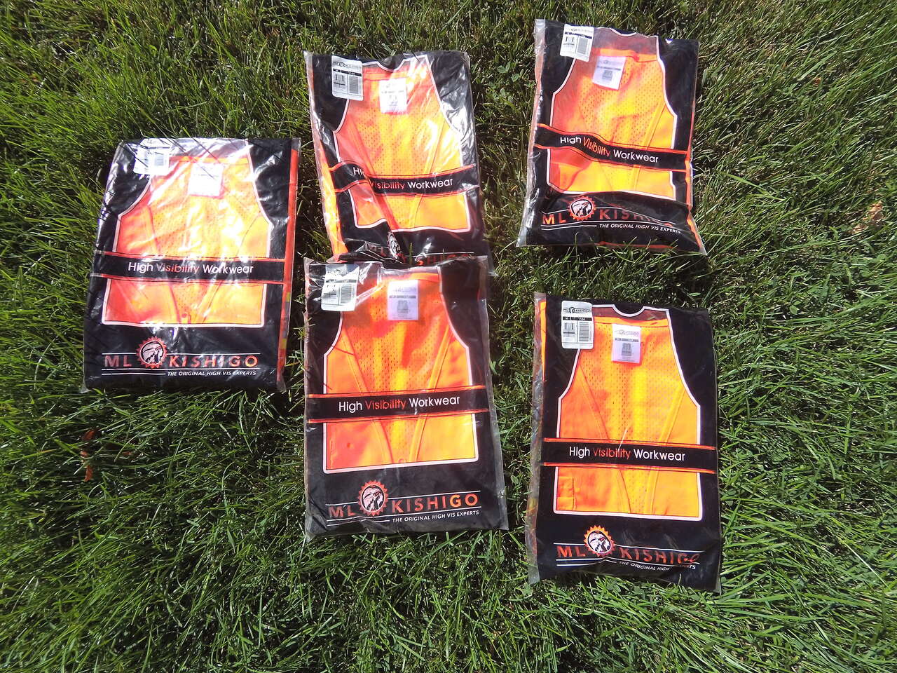 6 ML Kishigo High Visibility vest. (1 open, 5 still in plastic packaging)