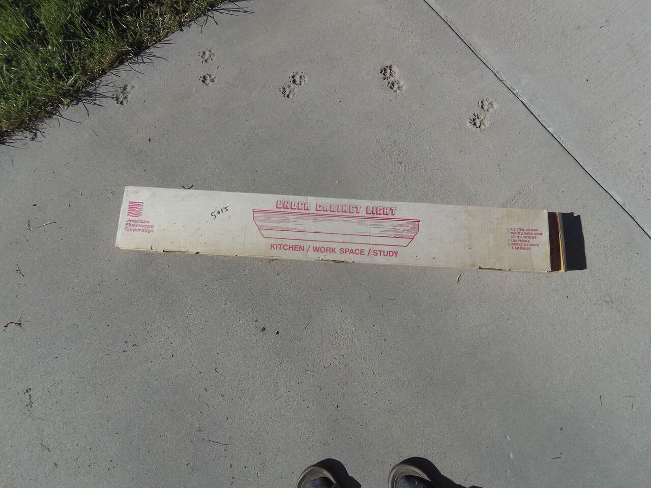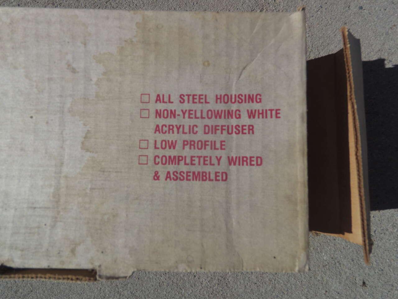 36" long, never opened except to photograph. The fixture also has an outlet built into it. The picture shows discolorization but that's just dust, light is in perfect condition.