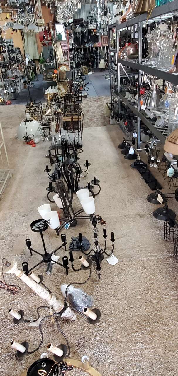 I have over 200 chandeliers, 100 vanity lights, and 100 flush-mount lights. There is also a large variety of faucets, sinks and bathroom fixtures. I have assorted furniture and home décor. Attached pictures show a portion of my inventory.