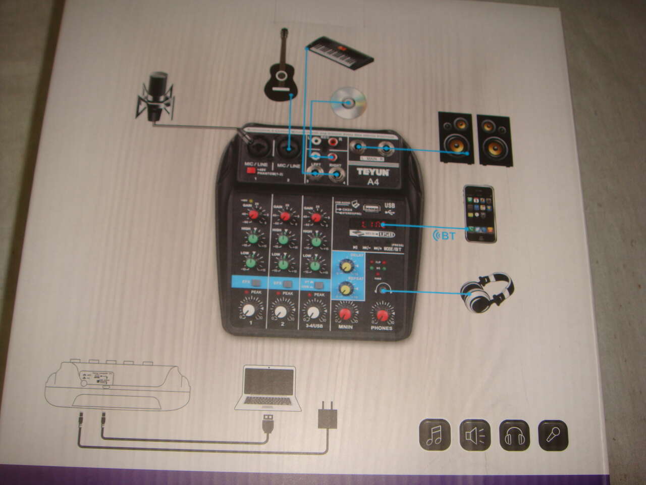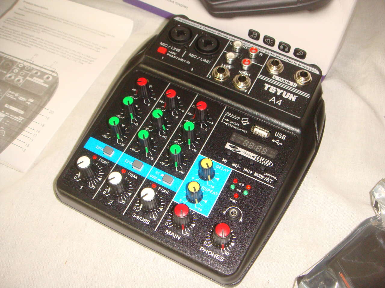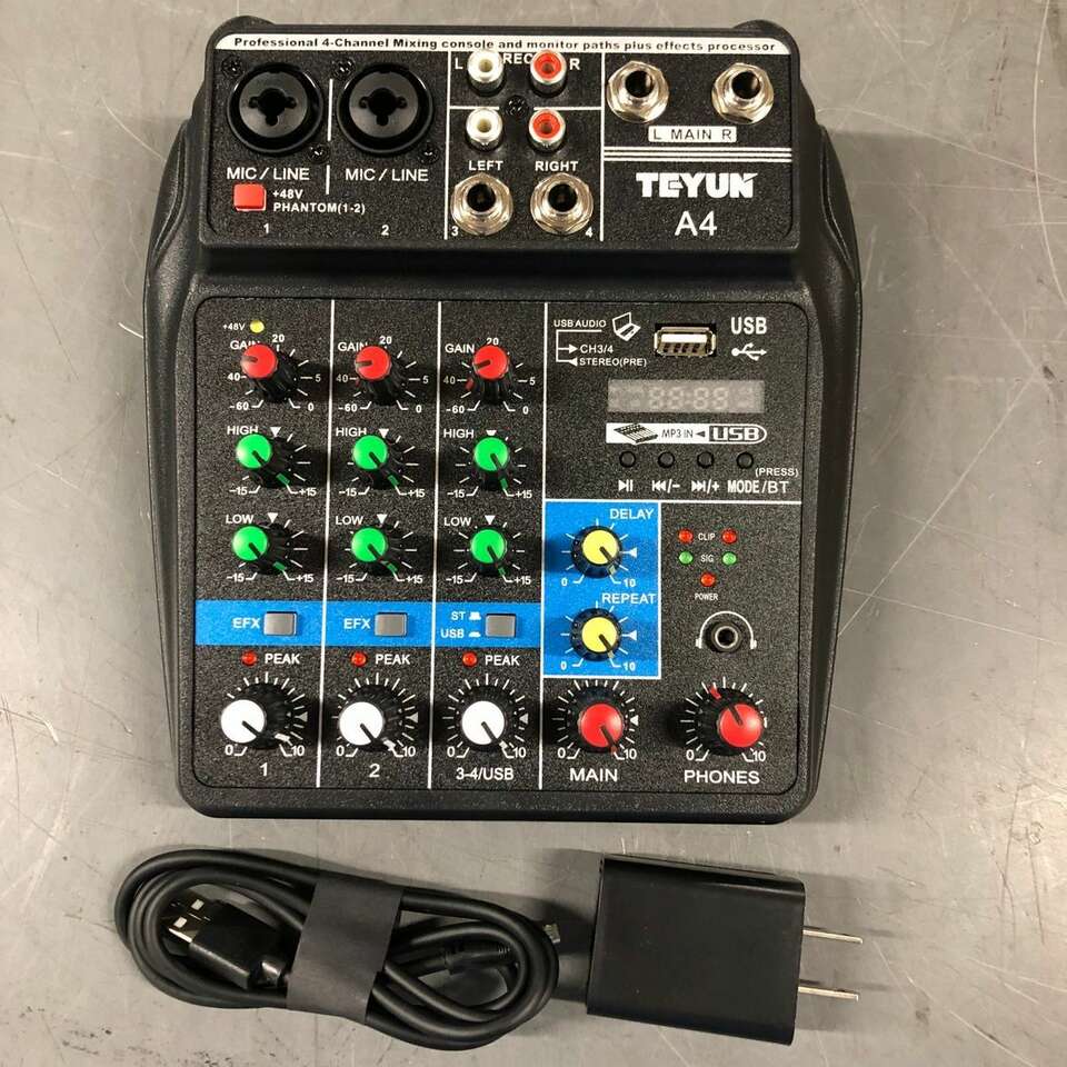 BRAND NEW TEYUN A4 COMPACT 4 CHANNEL PROFESSIONAL ULTRA LOW NOISE MIXING CONSOLE W BLUETOOTH/EFFECTS/48V PHANTOM POWER/USB. You are buying one brand new, never used mixer. It comes with everything shown. This is your chance to save big-time so don't miss out!!