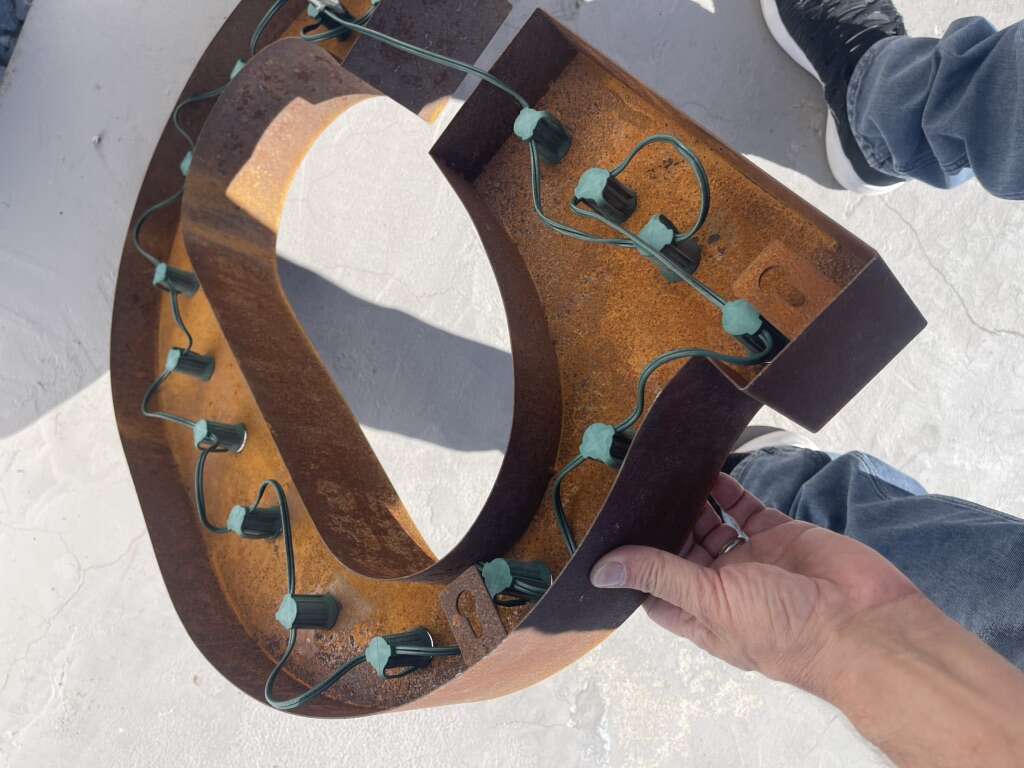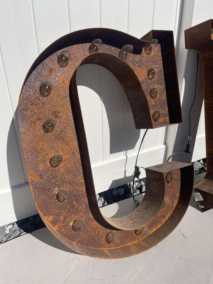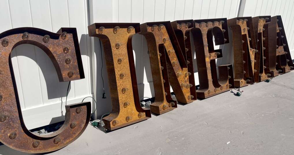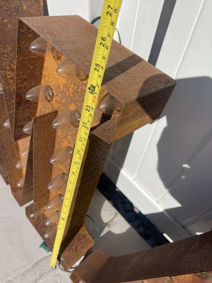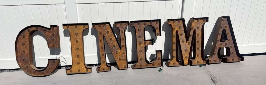 This is from Boston MA, metal vintage was rewired fully electric , ready to hang …. has all working lights and extra bulbs , perfect vintage piece for a Home Theatre Room. Each letter is approximately 2’ high