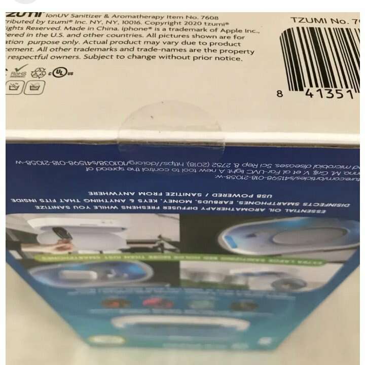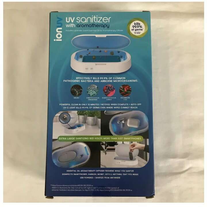 Ionuv by Tzumi UV Sanitizer with Aromatherapy/New/No 7608/10 Min Cycle. Condition is New in Sealed Box This is a brand new, in sealed box UV Sanitizer with Aromatherapy. Box states that it kills 99.9% of germs. Can also be used to sanitize earbuds, watches, keys, money and many other things.