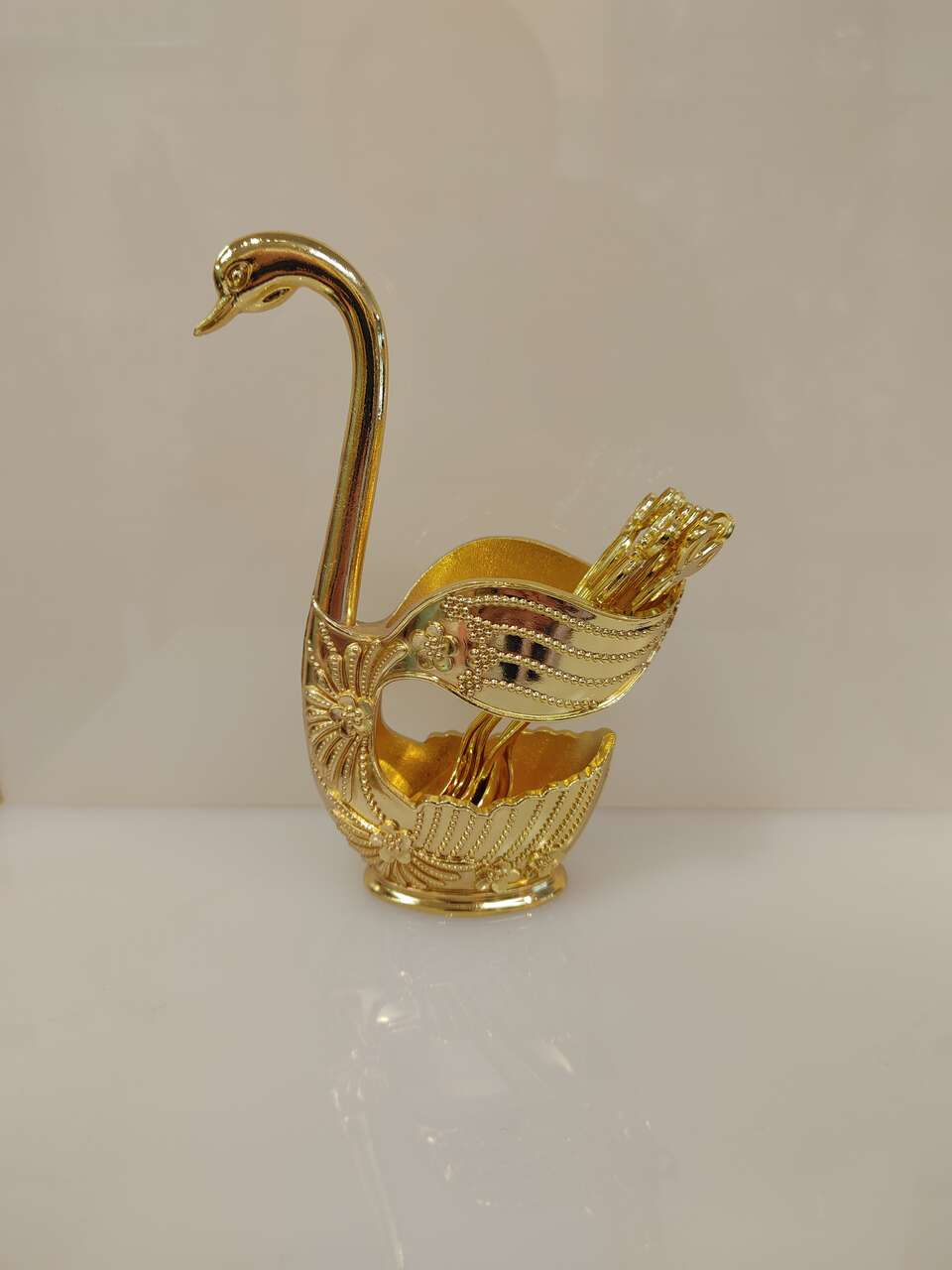 7pc demitasses spoons & swan holder