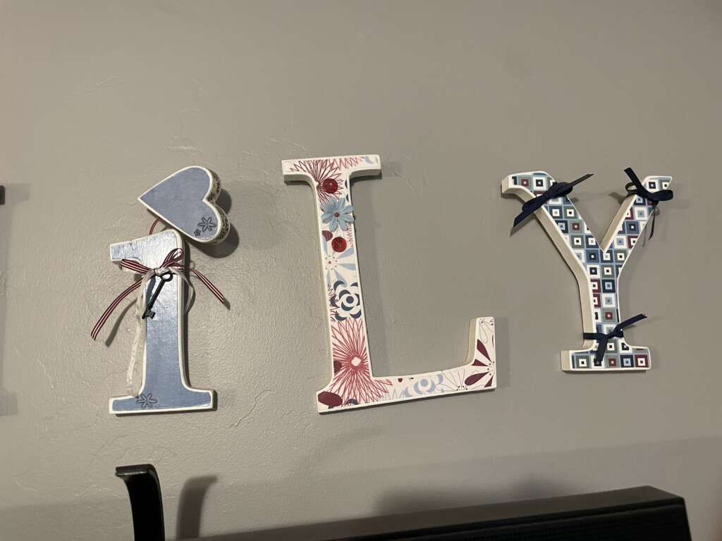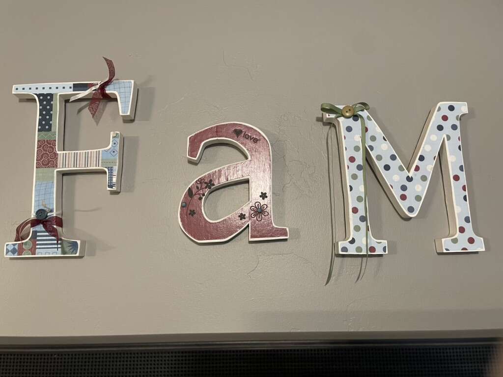 Crafted family letters to hang in your home. Americana style. Trying to downsize.