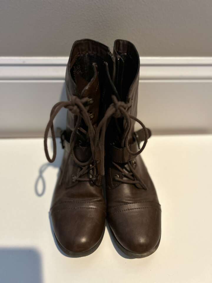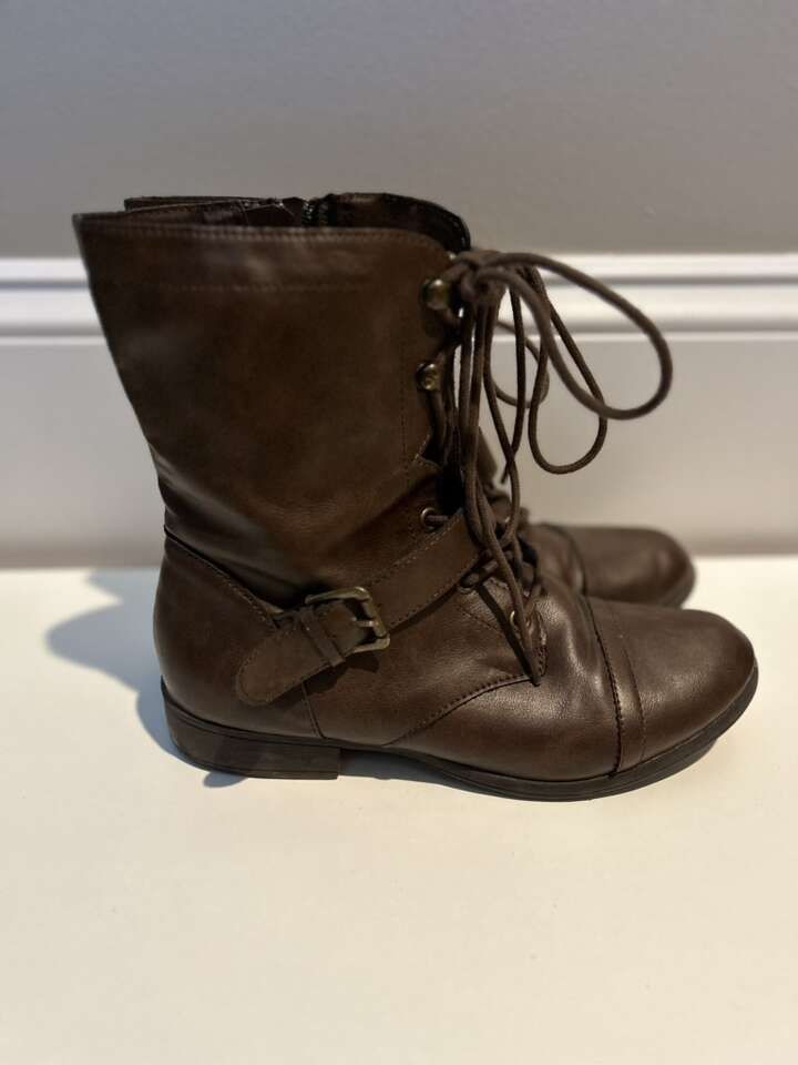Three pairs of boots for sale. The black boots and brown boots with a heel are size 6 and the brown boots without a heel are size 7 1/2. Will sell separately for $5 each or all together for $10. Smoke free home. Text preferred. Cash or Venmo.