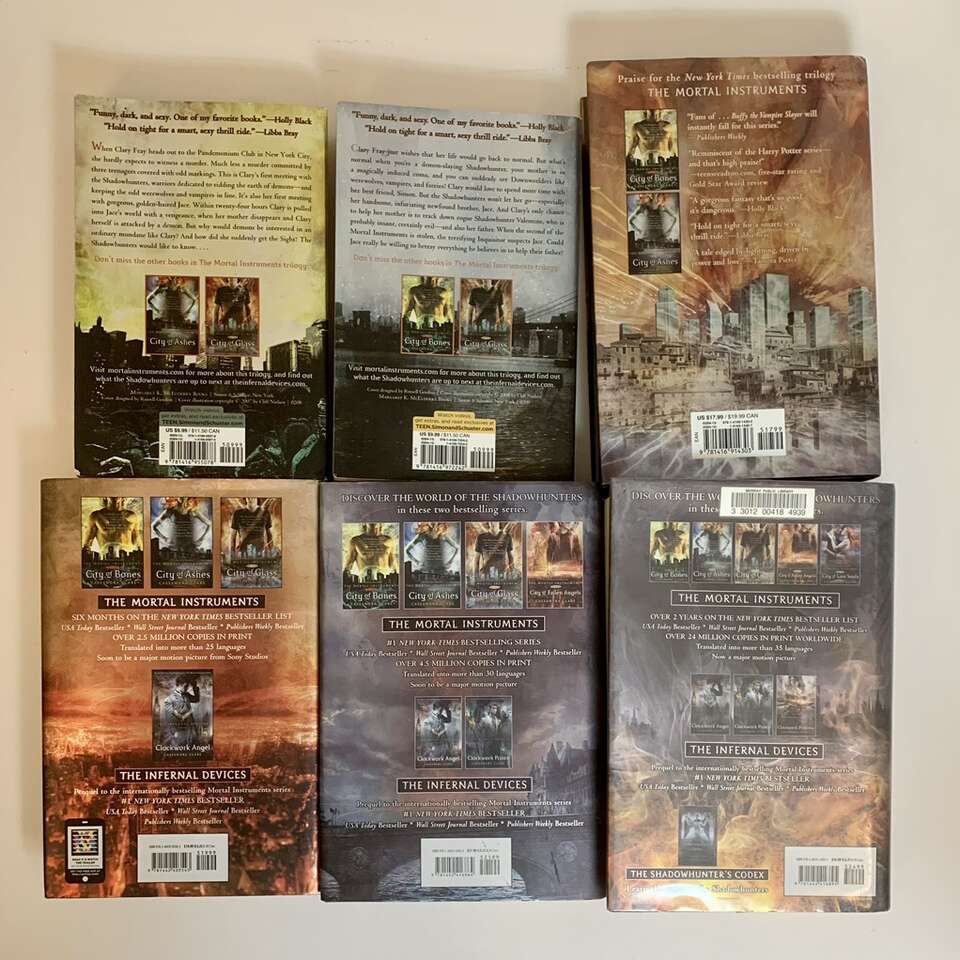 VenmoThe Mortal Instruments by Cassandra Clare Books one through six (see pictures) two softcover and four hardcover with dust jackets. $48 for the set or $8 for hardcover and 5$ for soft. Message me if you’re interested in purchasing.