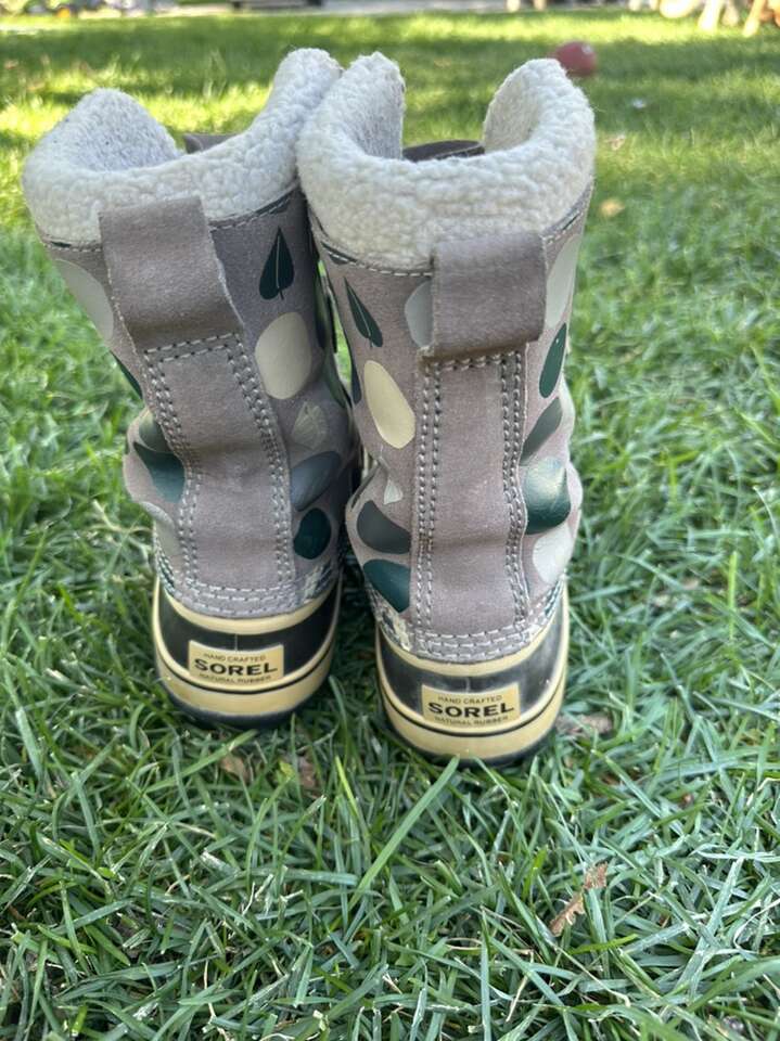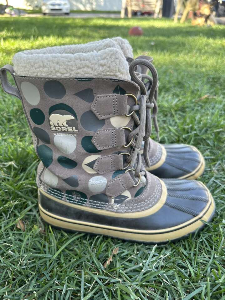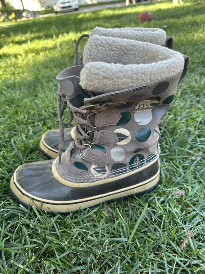 Sorel women’s size 6, beige with polkadots on uppers and black rubber foot bed. They’re in excellent condition. See photos for details. I take cash or Venmo. Text is best. 801-201-4446.