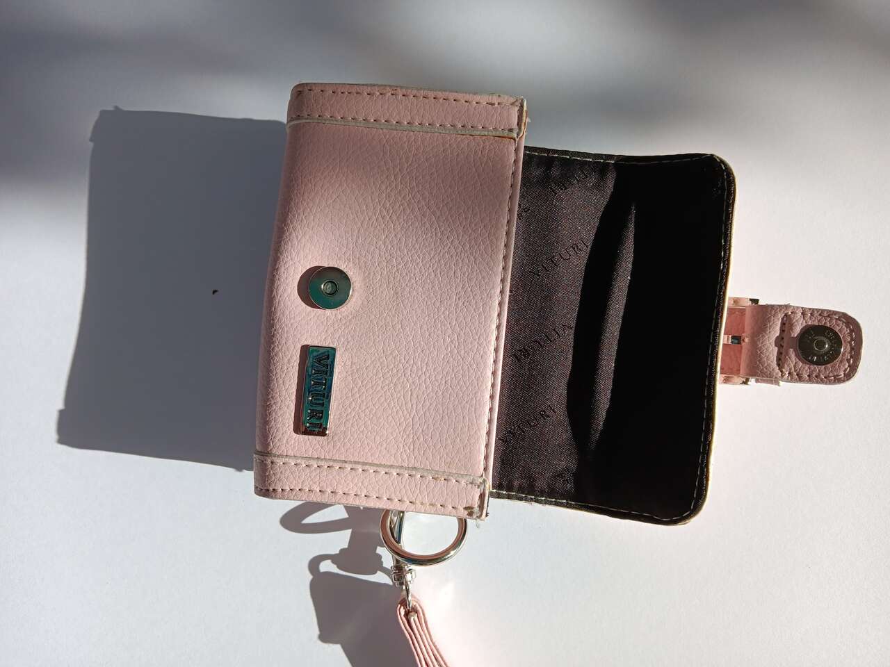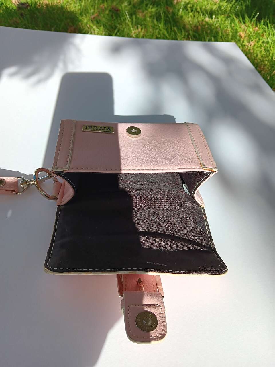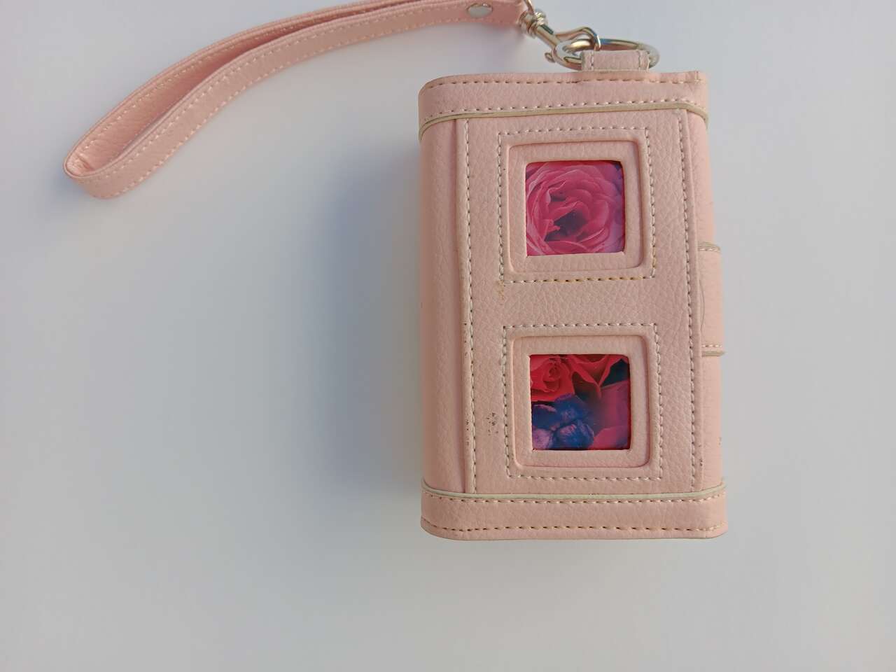 VenmoPink wristlet Camera bag for small digital camera- or store trinkets or small stuff in your car. 2 pockets inside for storing batteries, credit card and other accessories. Pocket on back with 2 small photo windows. Magnetic snap closure with swivel clasp on wrist strap. Approx 5 1/2"W 3 1/2" H 2"D