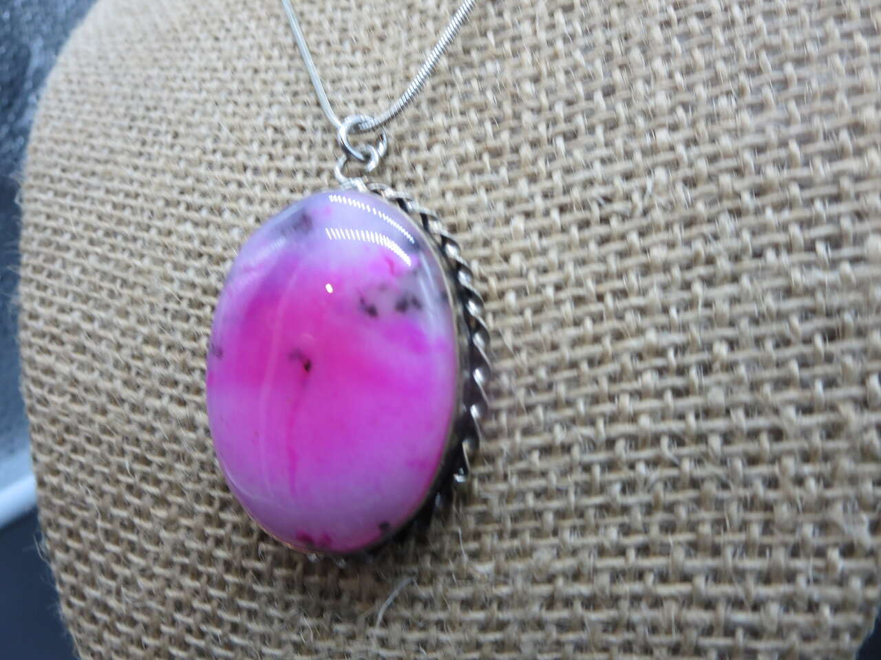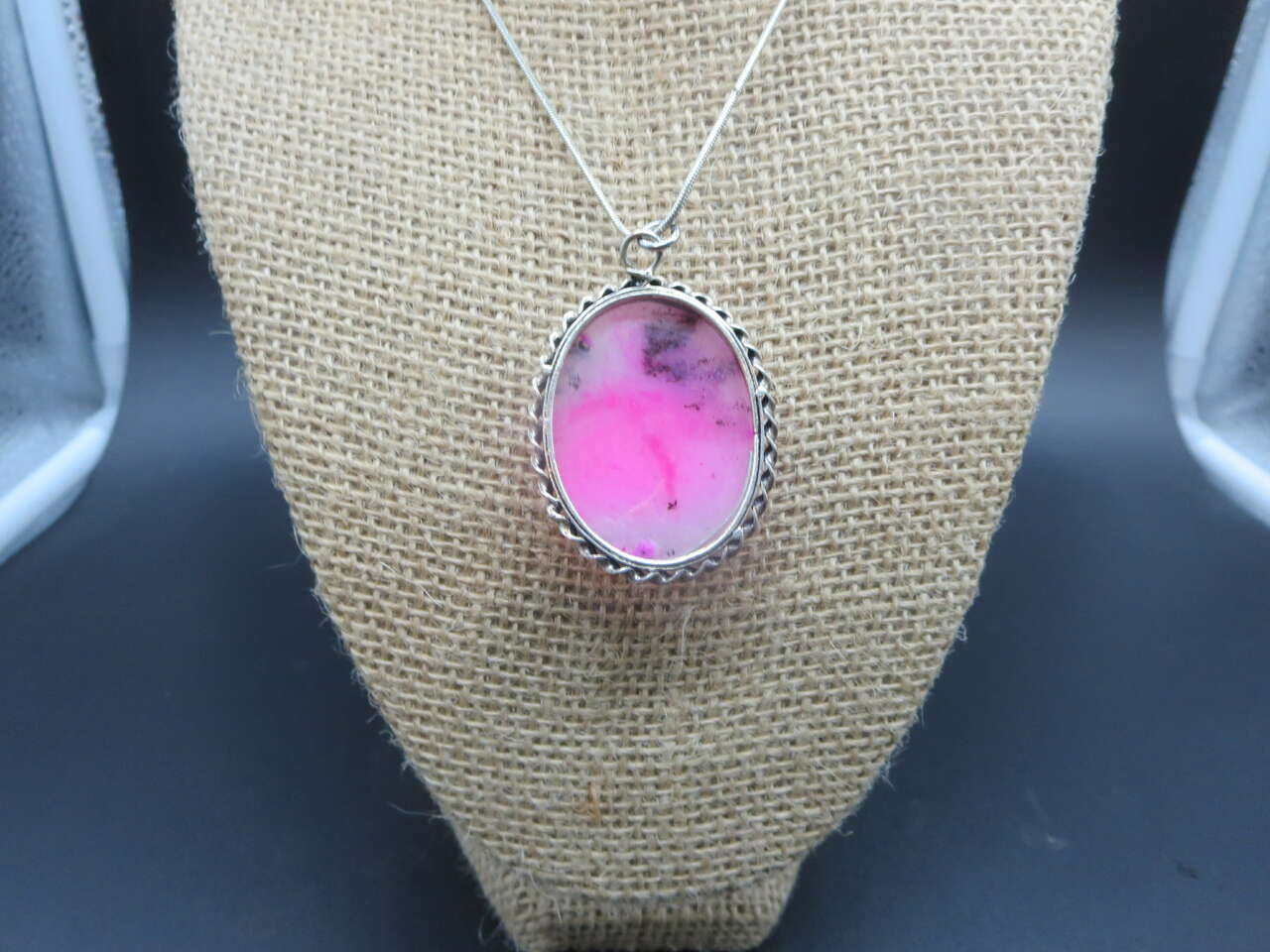 I have a beautiful. Sterling Silver Pretty, 2.25", Vivid Pink Dyed, Genuine Dendritic Opal Cabochon Pendent. For sale call or text only thanks for looking D.