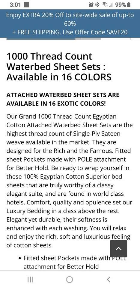 I have a almost new attached cal King sheets (used for 2 days, after was washed 3 times to be sold) Luxury Egyptian Linens .com 1000 thread count Sateen weave California King attached waterbed sheets with 2 pillow cases, these are 5 star quality hotel style sheets that are of the upmost highest quality sheets you can buy, I like the unattached sheets as a personal preference and had purchased the wrong ones after I had washed them. I bought them 9/20/23 new for $130, they are so soft I bought the other style I prefer