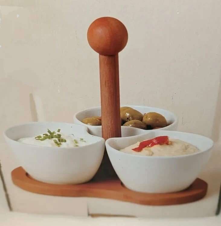 Chip and dip food tray similar to the last picture. But no bowls. About 7in tall.