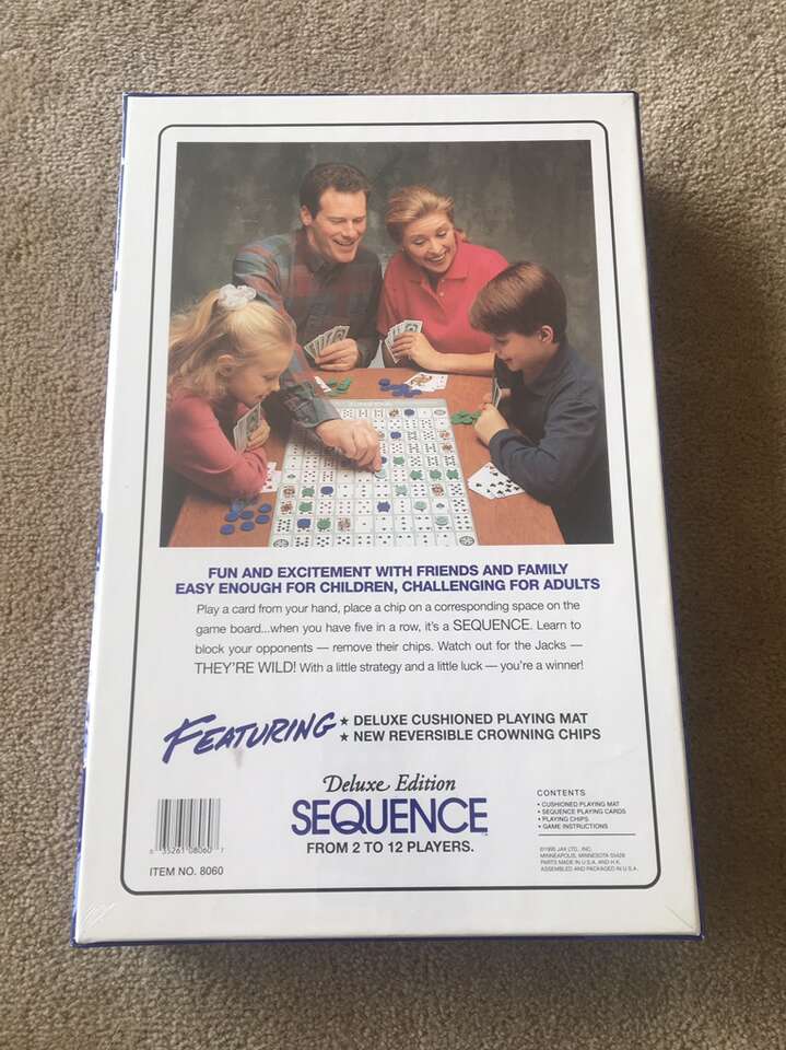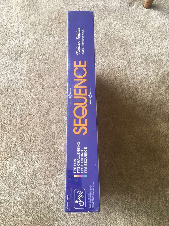 NEW (sealed in plastic) Vintage 1995 Sequence Board Game: Deluxe Edition. An exciting game of strategy. 2-12 players, ages 7+. New, unplayed condition. Text only. Cash or Venmo.