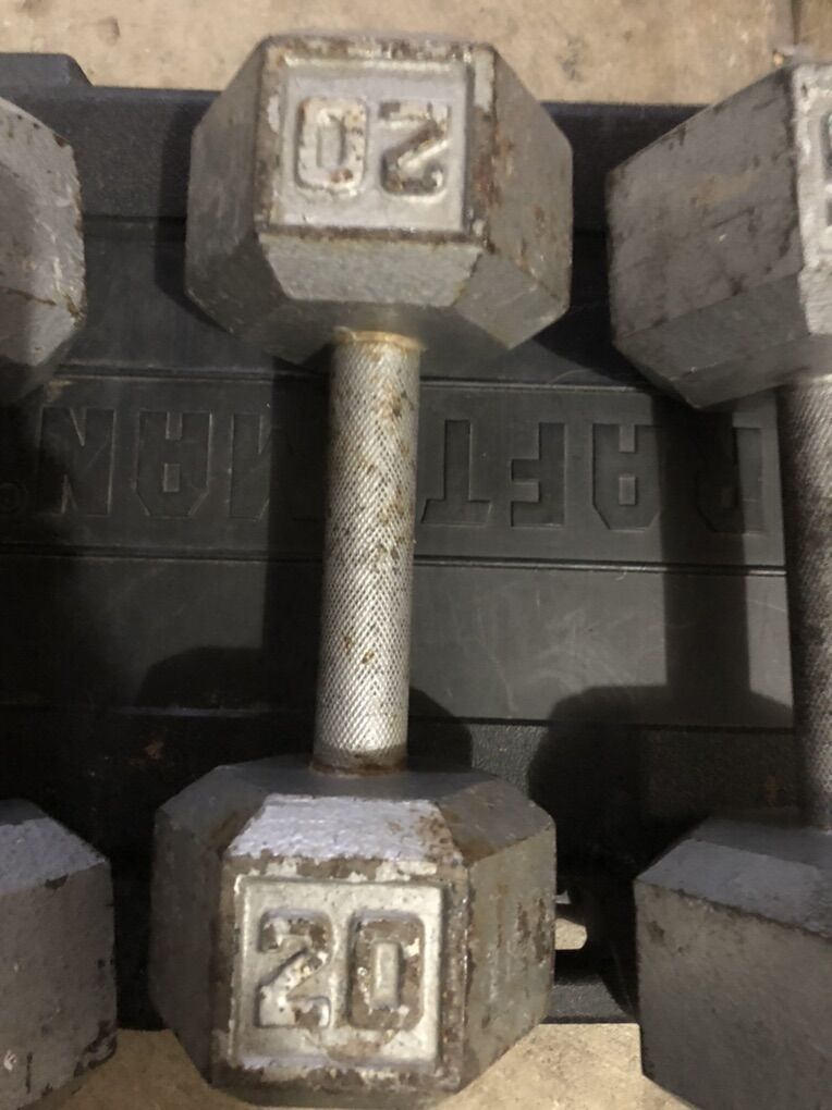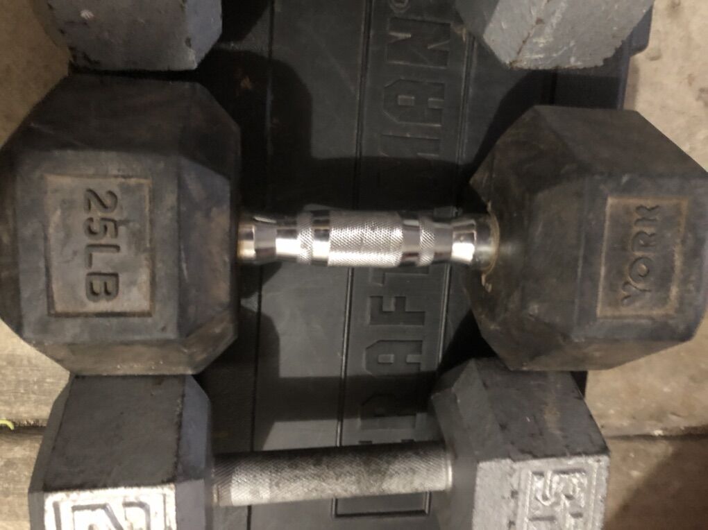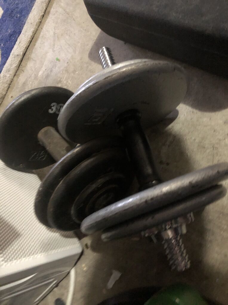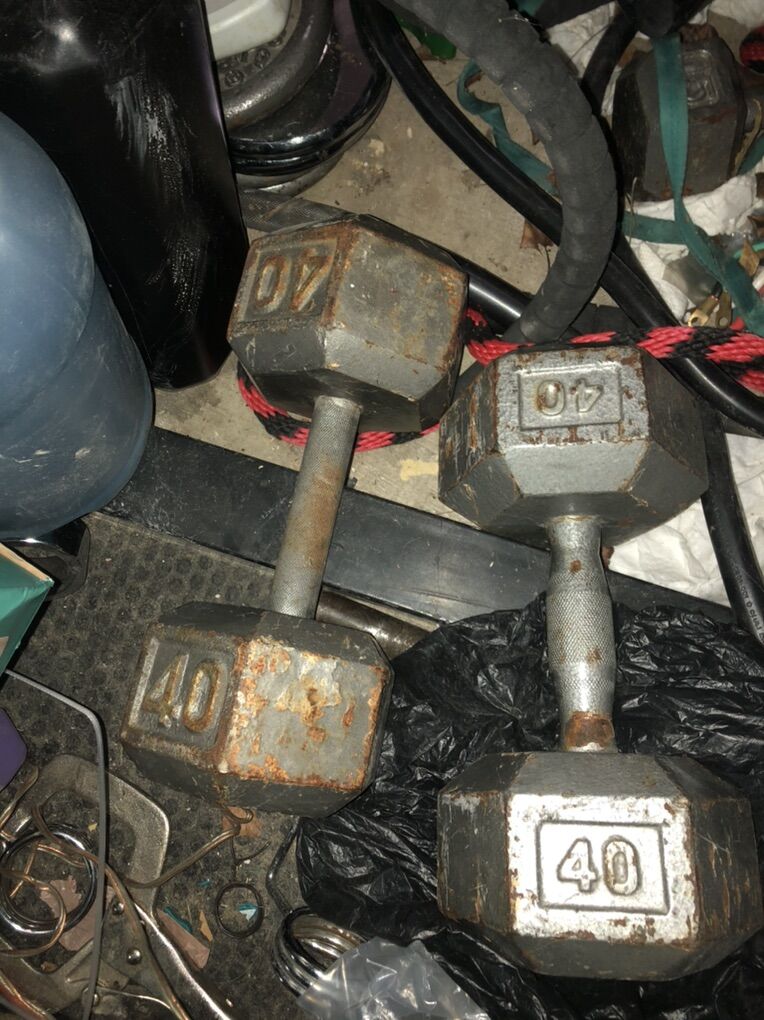 40 pound miss match set 50$ Some single dumbbells 70 cents per pound 10 15 20 25
