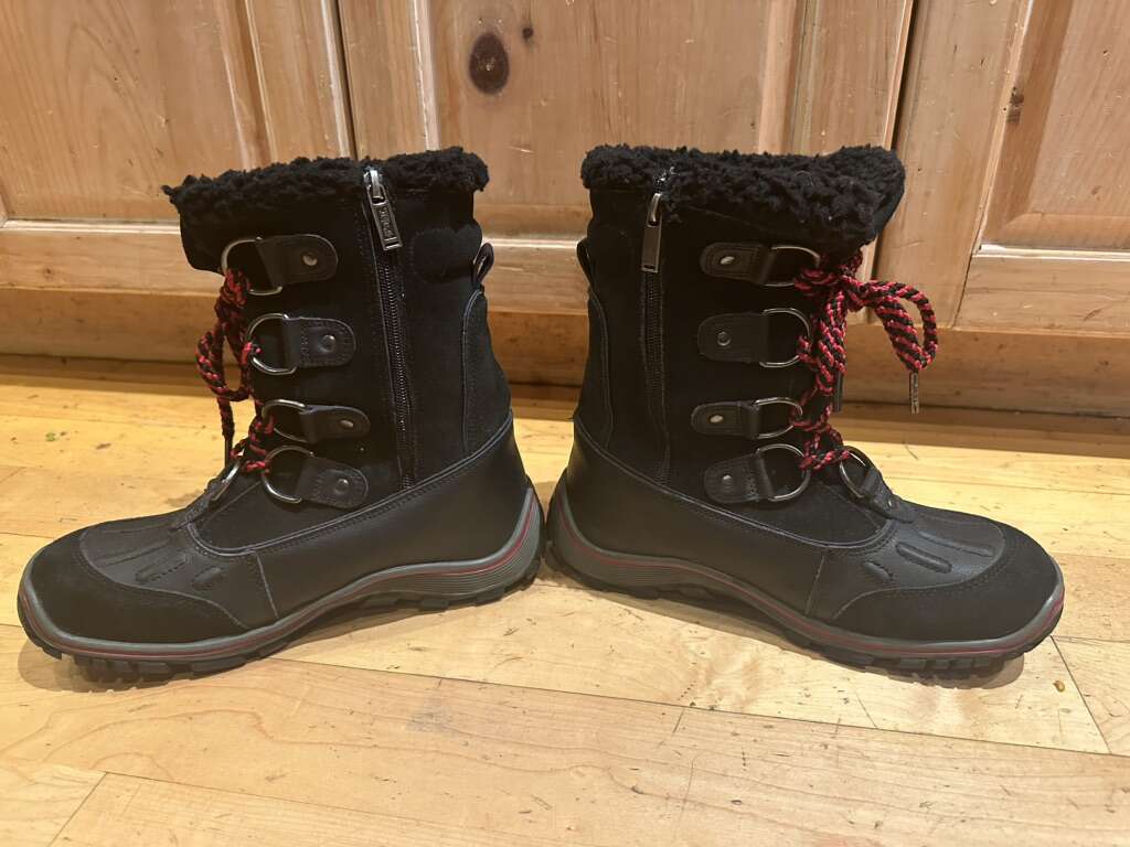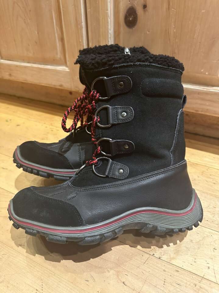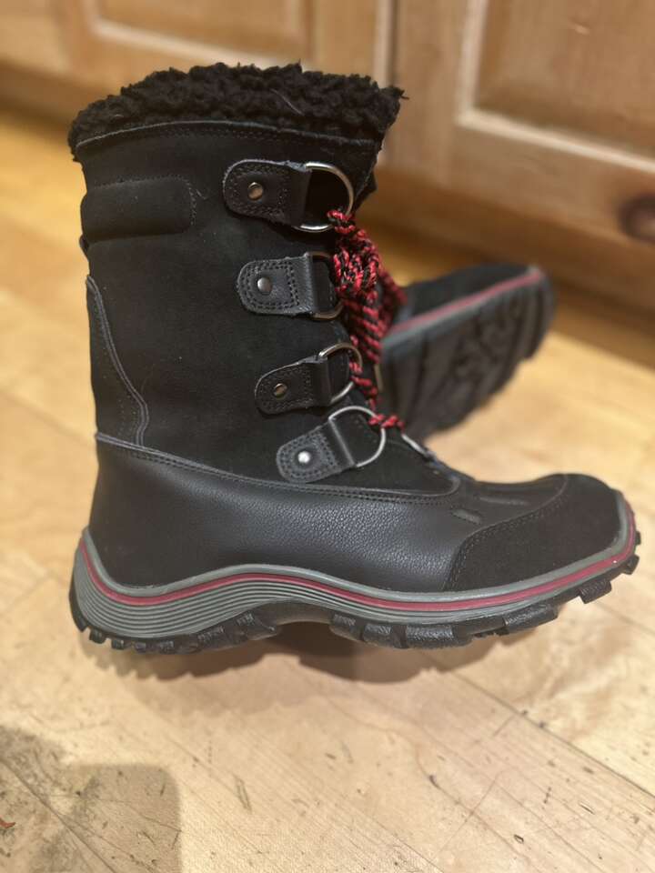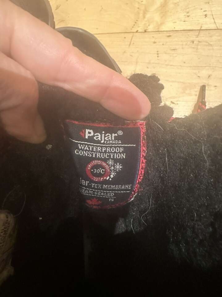 Pajar size 8 black leather with red trim waterproof winter boots. These have inside zippers for easy on and off. They are good to -30°C. They are lightly condition. They are made in Canada. See photos for details. I take cash or Venmo. Text is best. 801-201-4446.