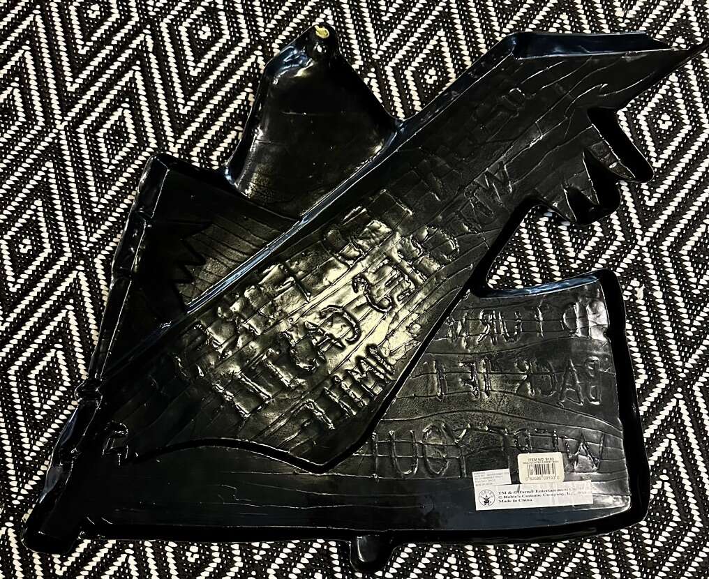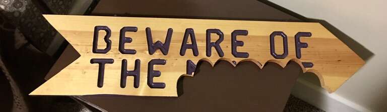 2 great signs for one low price! The first is a fun sign that is great for Halloween or even your yeti scene! About 2 feet long with a chain on the top. One of a kind. The second is a plastic replica of the sign from the Wizard of Oz movie. The tip is broken but it’s not noticeable.