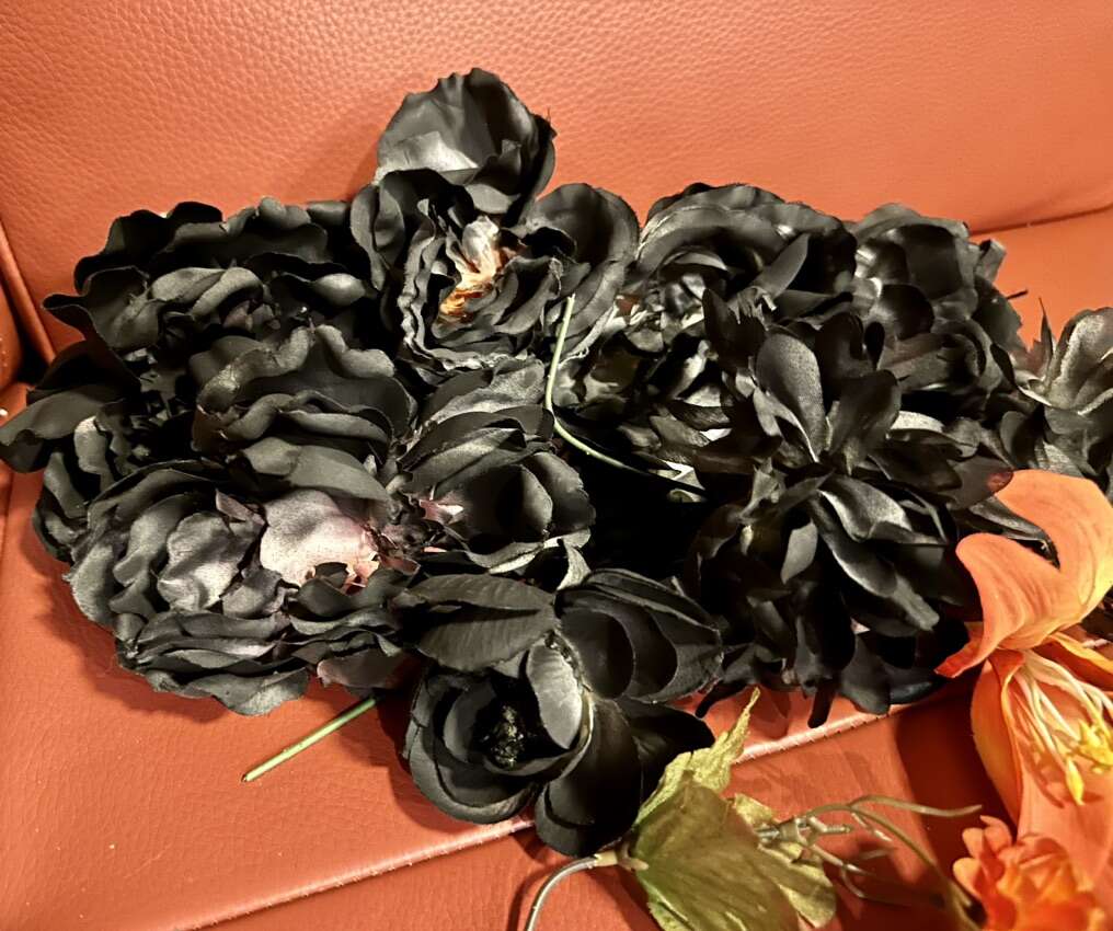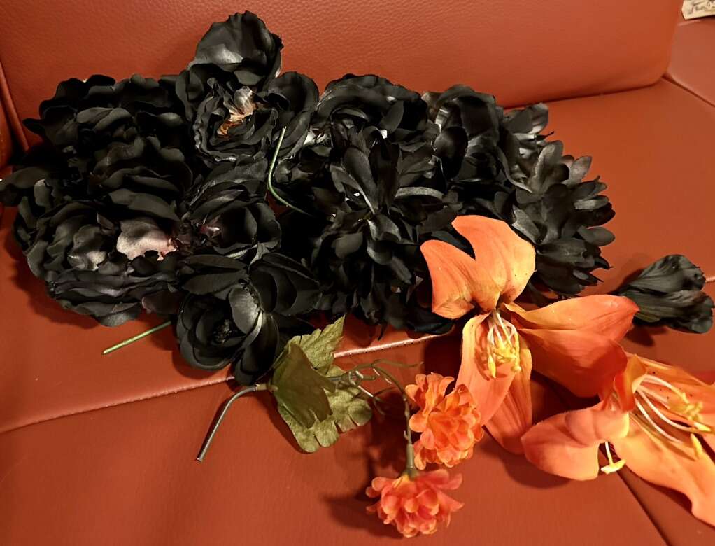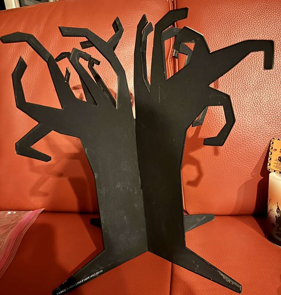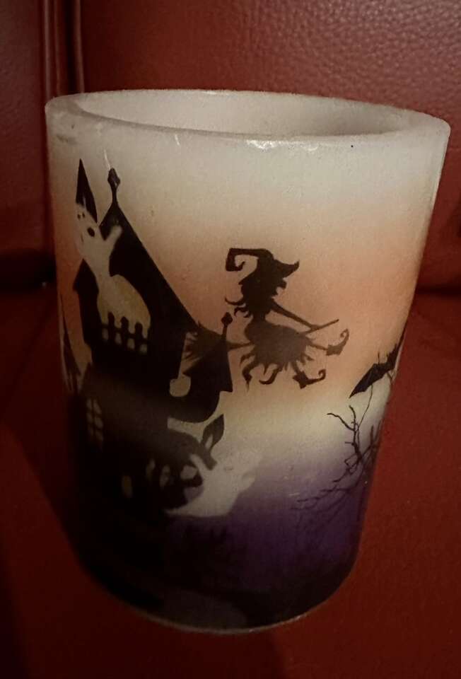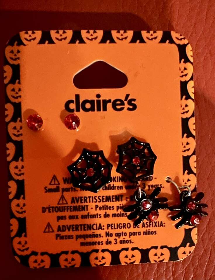 A big, wonderful and diverse collection of Halloween items! A chalkboard tree from Target that you can draw and write on, 3 cute pairs of earrings that were originally $8.50, still brand new. A battery-operated flicker wax candle. A small child-sized cute unicorn headband. A glass oil Jack-o-lantern lamp, unused (oil not included). 2 Jello jigglers molds with recipe. A cute little Chatterbug, new with tags attached. A handmade jingle bell spider ornament. A set of Edison solar lights, untested. A large bag of black and orange flower picks.