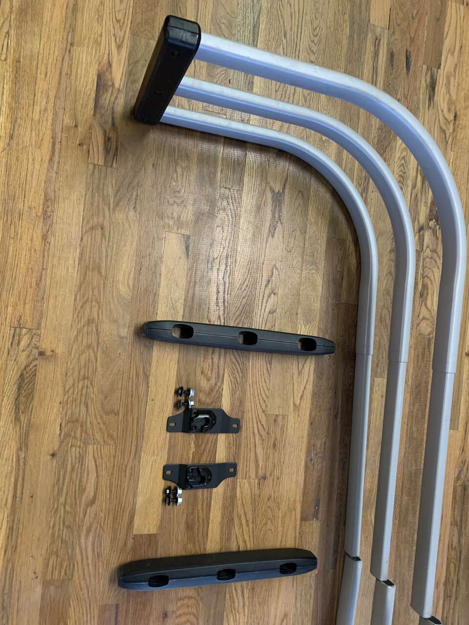I pursched this to find out what was inside the box was used and modified, someone cut the bars to make it shorter, missing 2 nuts and 2 bolts.
