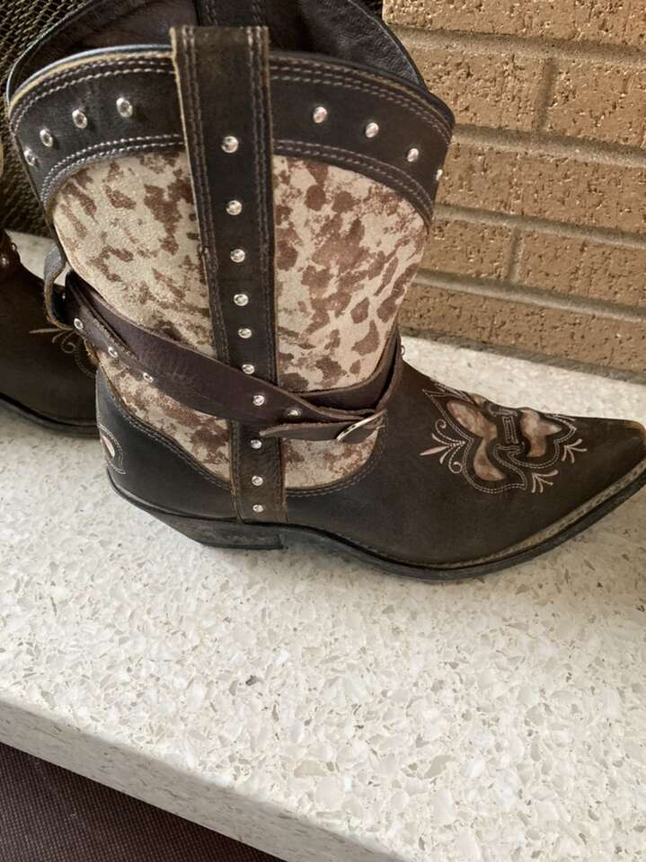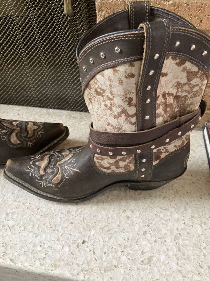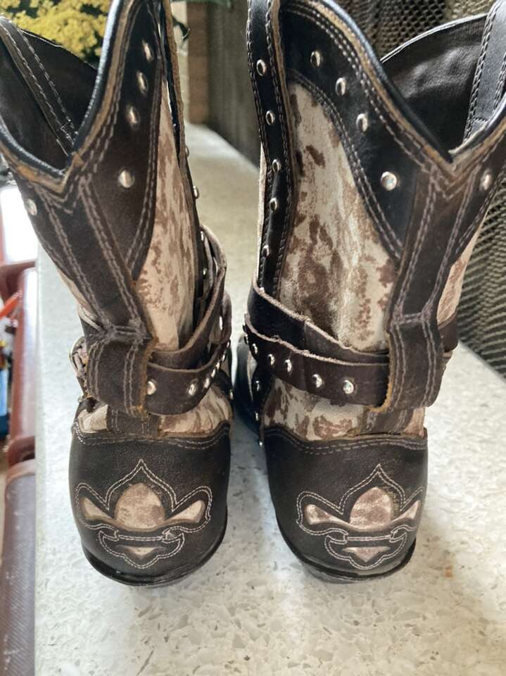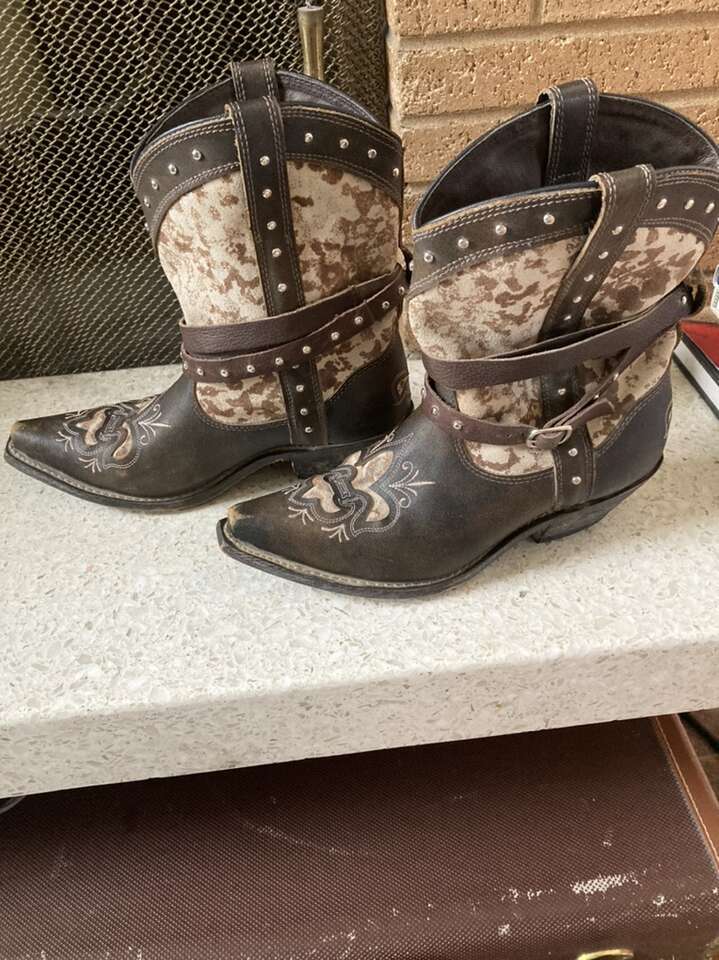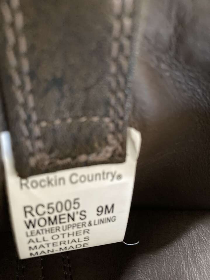 “Rockin Country”brown leather cowboy boots . Size 9. Very good condition. Minimal wear. Only scuffs on tips of boots per picture. Could be like new with dark polish . Over $180 new. Only $70. Now $50. Cash only . Near BYU stadium in Provo.