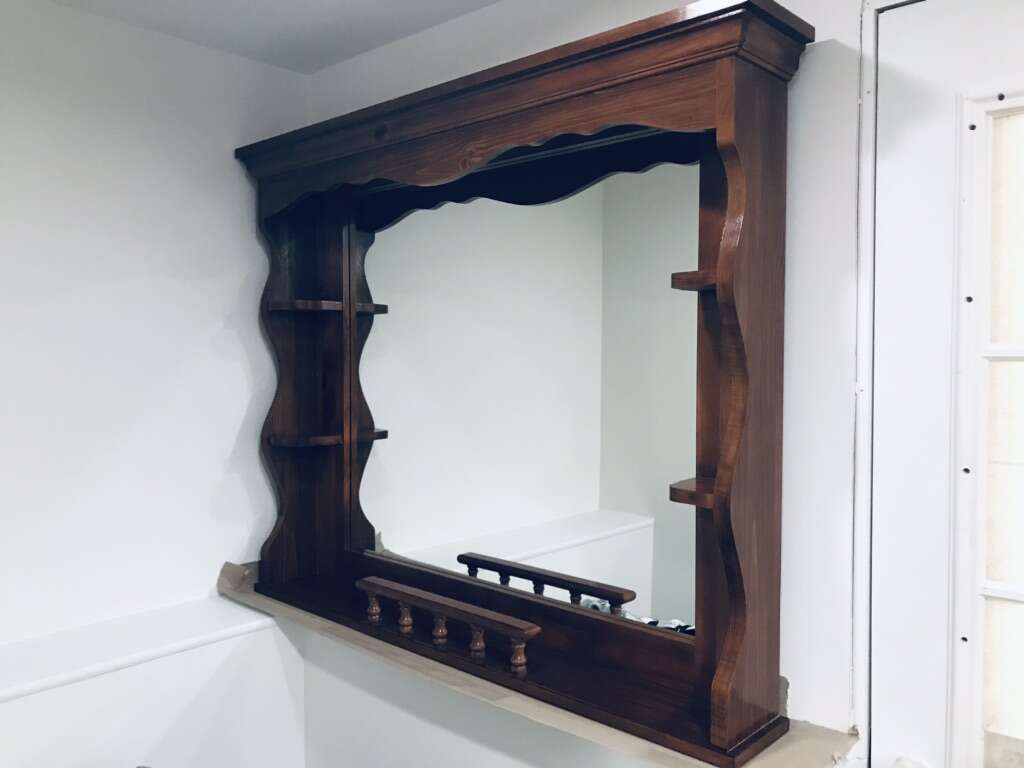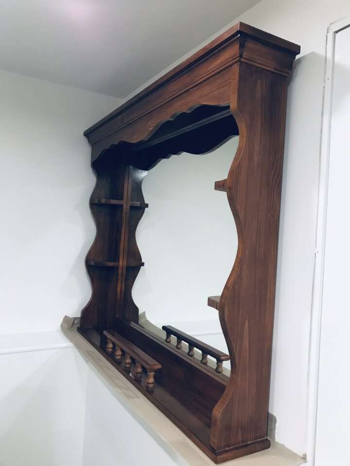 VenmoImpressive classic-style hallway mirror framed in mahogany, with some little shelves on each side. Will go nicely for a hallway or as a bedroom dresser top mirror. Very nice piece for vintage or classic styles lovers. Dimensions: HxW 46.5''x 39'' (frame) HxW 31 1/4'' x 35 1/4'' (mirror) Comes from a smoke-free, pet-free home. Location: White Sands, Sandy. Feel free to message me with any other questions. Message or text only, please.