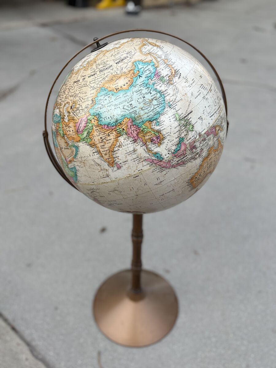 I also have mid century floor globes and large hanging school maps,and large vintage world atlas books, and travel road maps for sale
