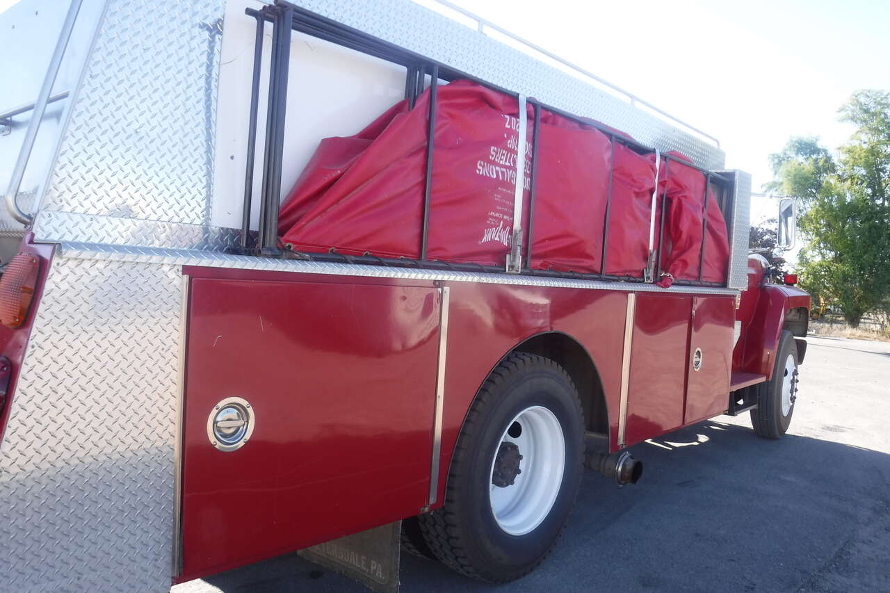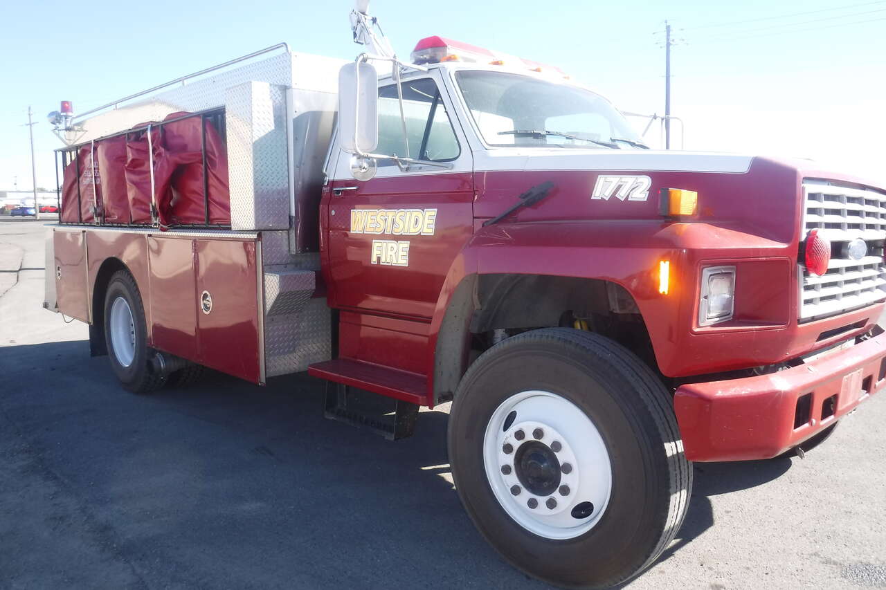 1988 Ford F800 Fire tanker nurse truck. 11,805 ACTUAL MILES. 2200 gallon 13 Ft. Stainless steel tank. 8.2 Diesel with Allison Automatic transmission. All 6, 11R/22.5 Radials are 95% of new. Has auxillary pump and 1.5 and 2,5 hose and nozzles. Draft with hard suction hose. One owner engine from a County Dept. that has been kept inside the Firehouse when not in use since new. Comes wwith all emergency equipment. Truck is in the condition we received it from in service. Not detailed. It is spotlessly clean and in near new condition throughout. It is work ready. $18,900. Located in Twin Falls Idaho. Call 208-613-0050.