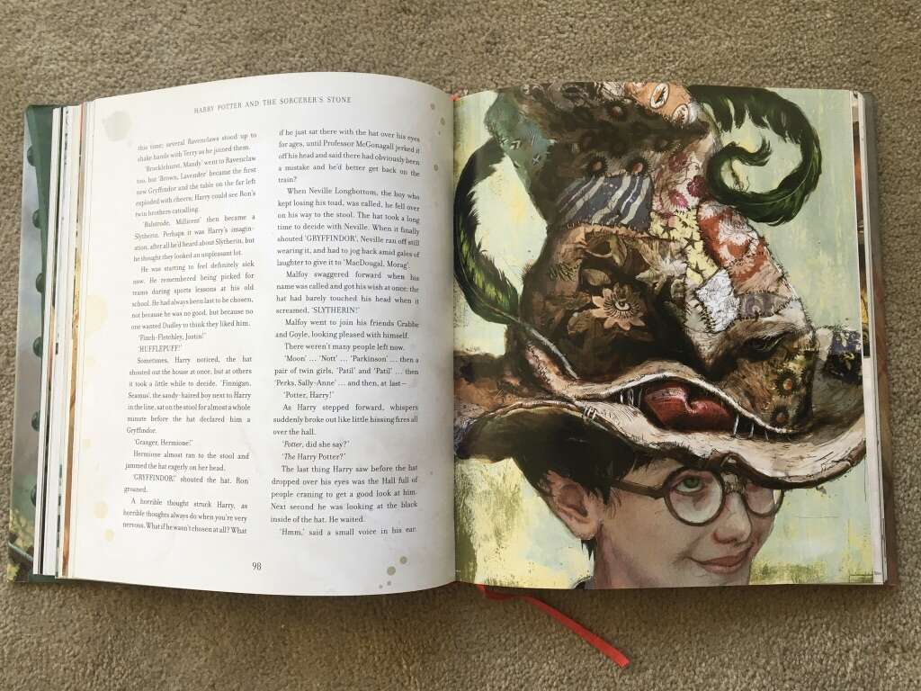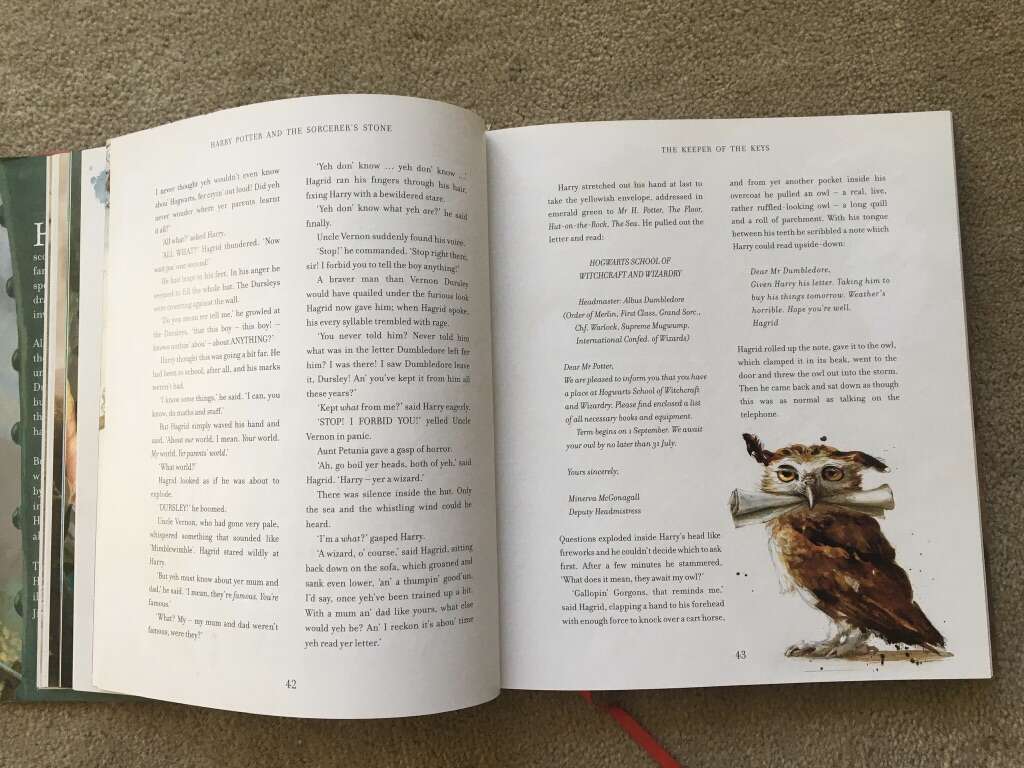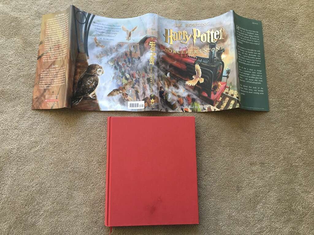 Harry Potter and The Sorcerer’s Stone, by J.K. Rowling, illustrated by Jim Kay. Large-format hardcover edition of book 1 in the beloved Harry Potter series. Published 2015, first illustrated edition, 246 pages. Excellent condition, including dust jacket. Text only. Cash or Venmo.