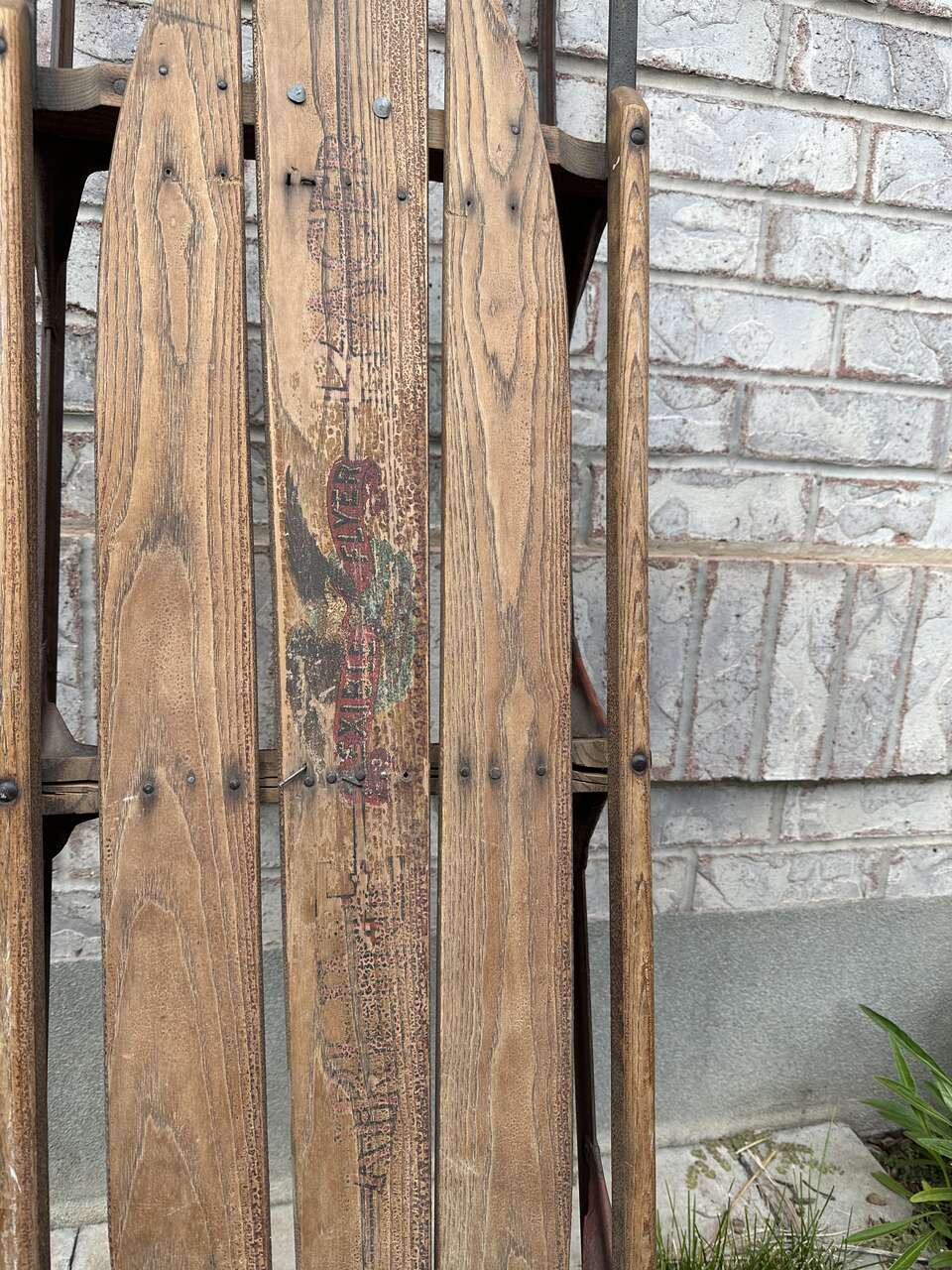 Vintage Flexible Flyer Airline Racer Wood Metal Sled 5 feet from the 1930's and 1940's. Great for Christmas decor.